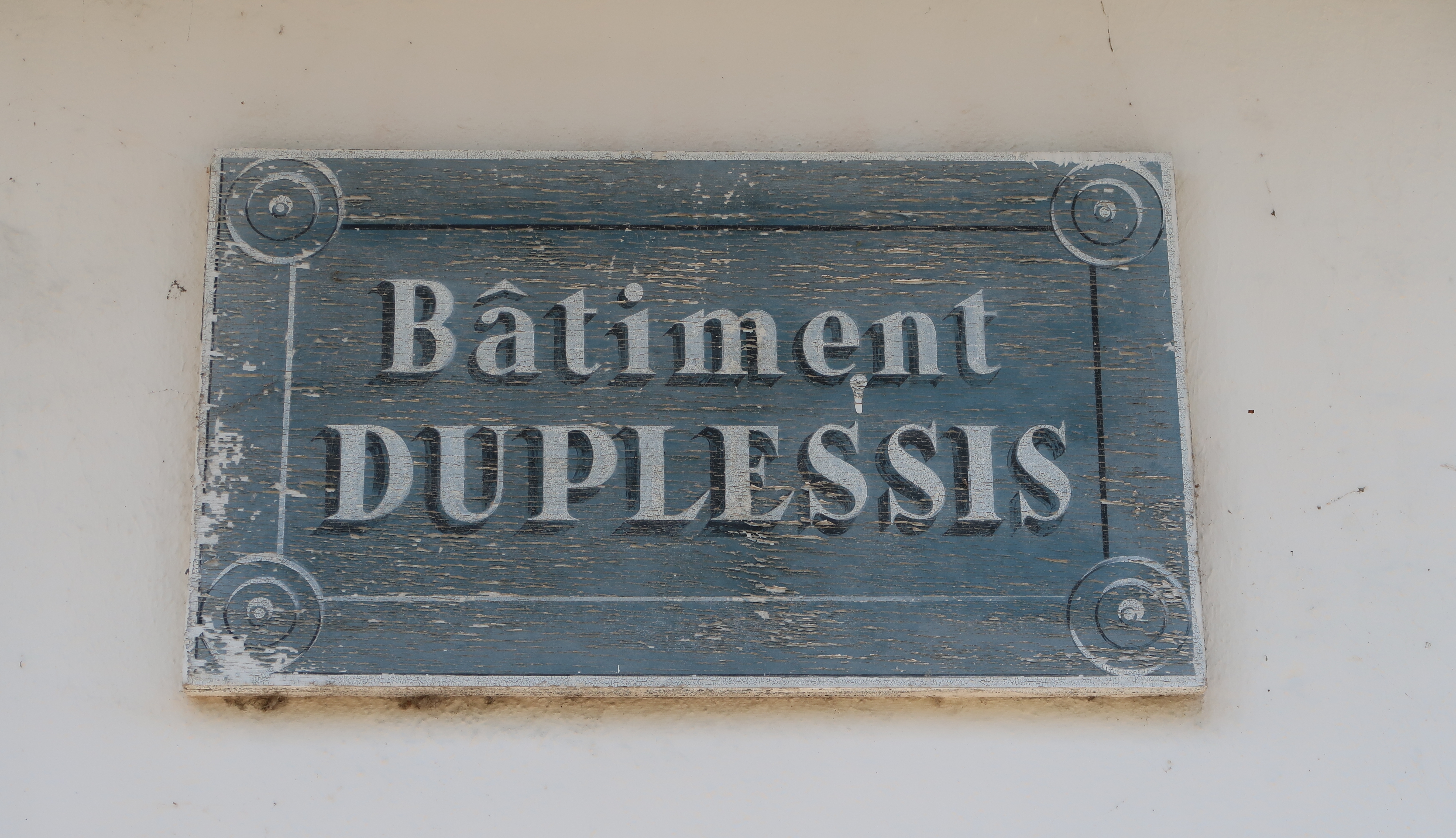 Vue du bâtiment Duplessis : signalétique en place (état en 2022)Immatriculation