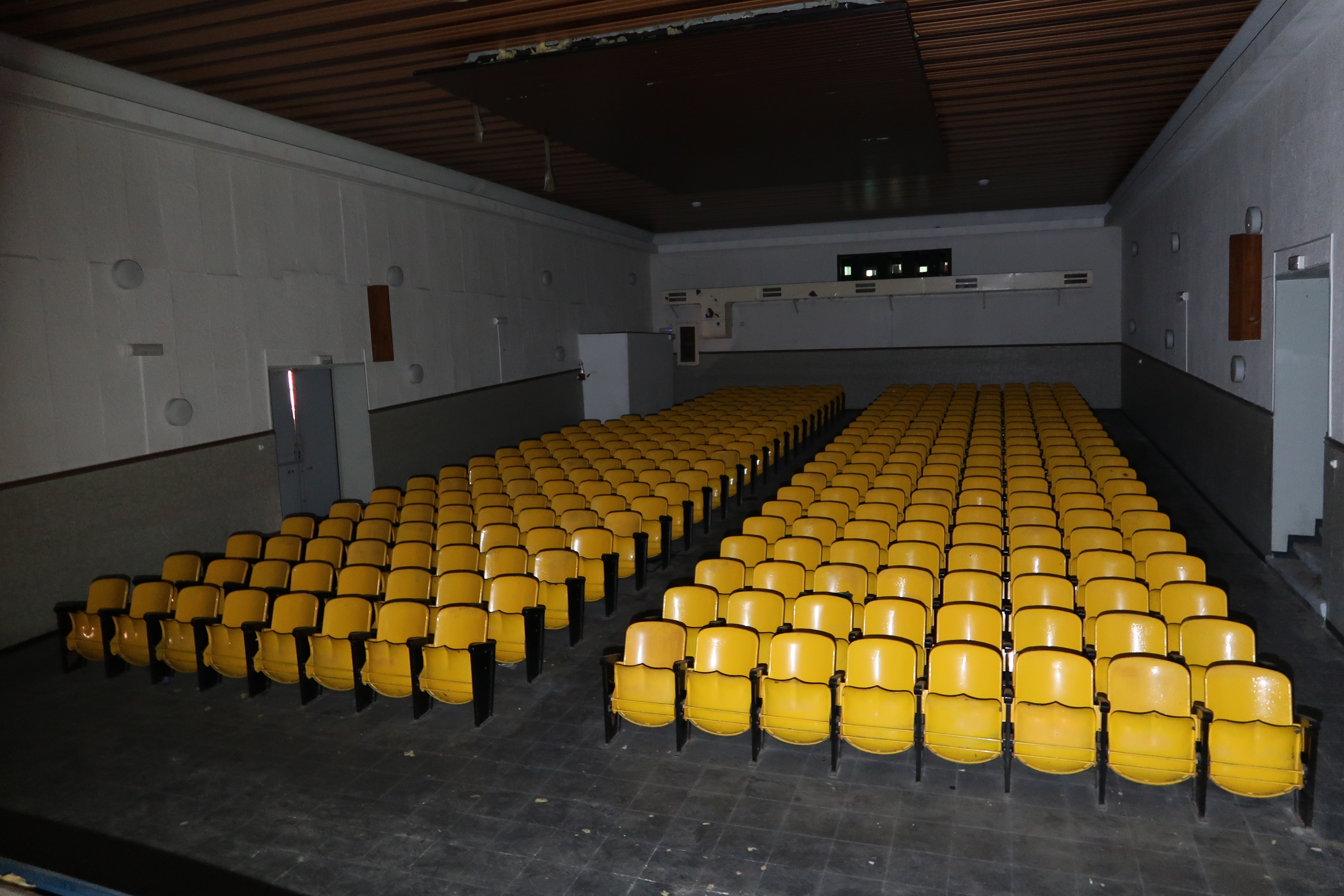Vue intérieure : salle de spectacle, fauteuils en gradin (état en 2022)Immatriculation