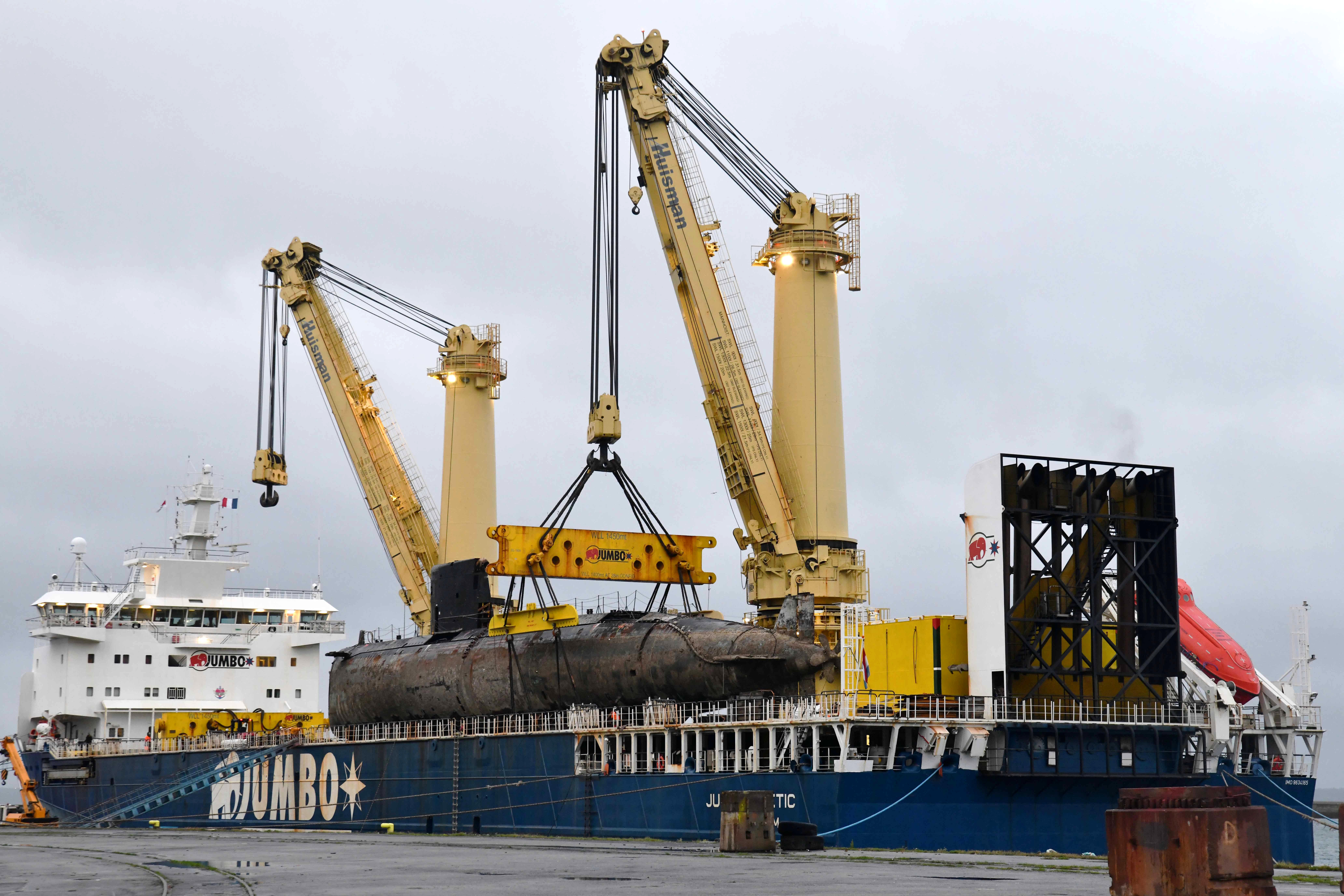 La coque de l’Agosta sur le pont du Jumbo Kinetic au port de Brest, 6 août 2021Immatriculation