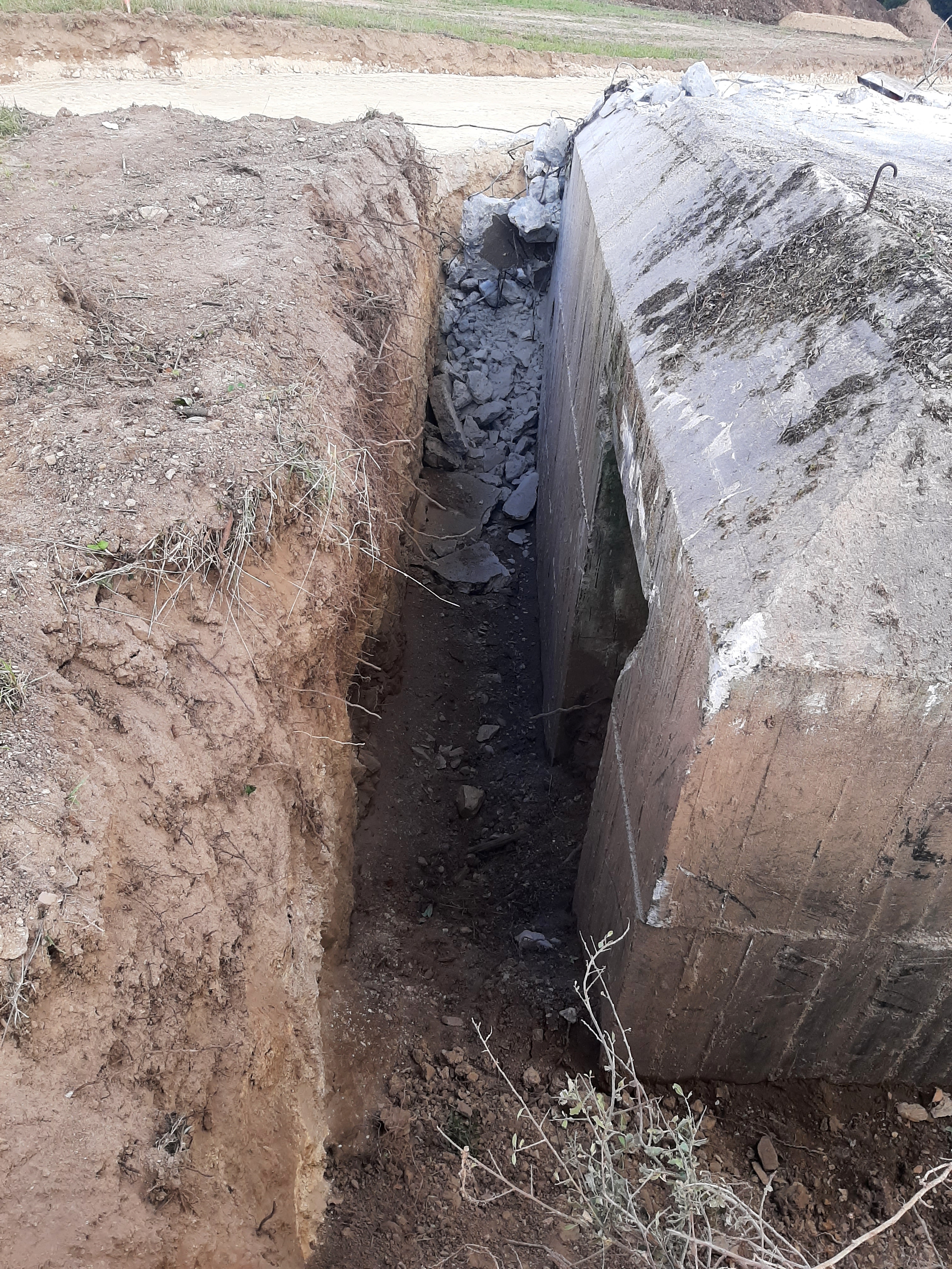 Vue de la déconstruction : mur ouest (25 septembre 2022). Au centre, l'entrée ouestImmatriculation