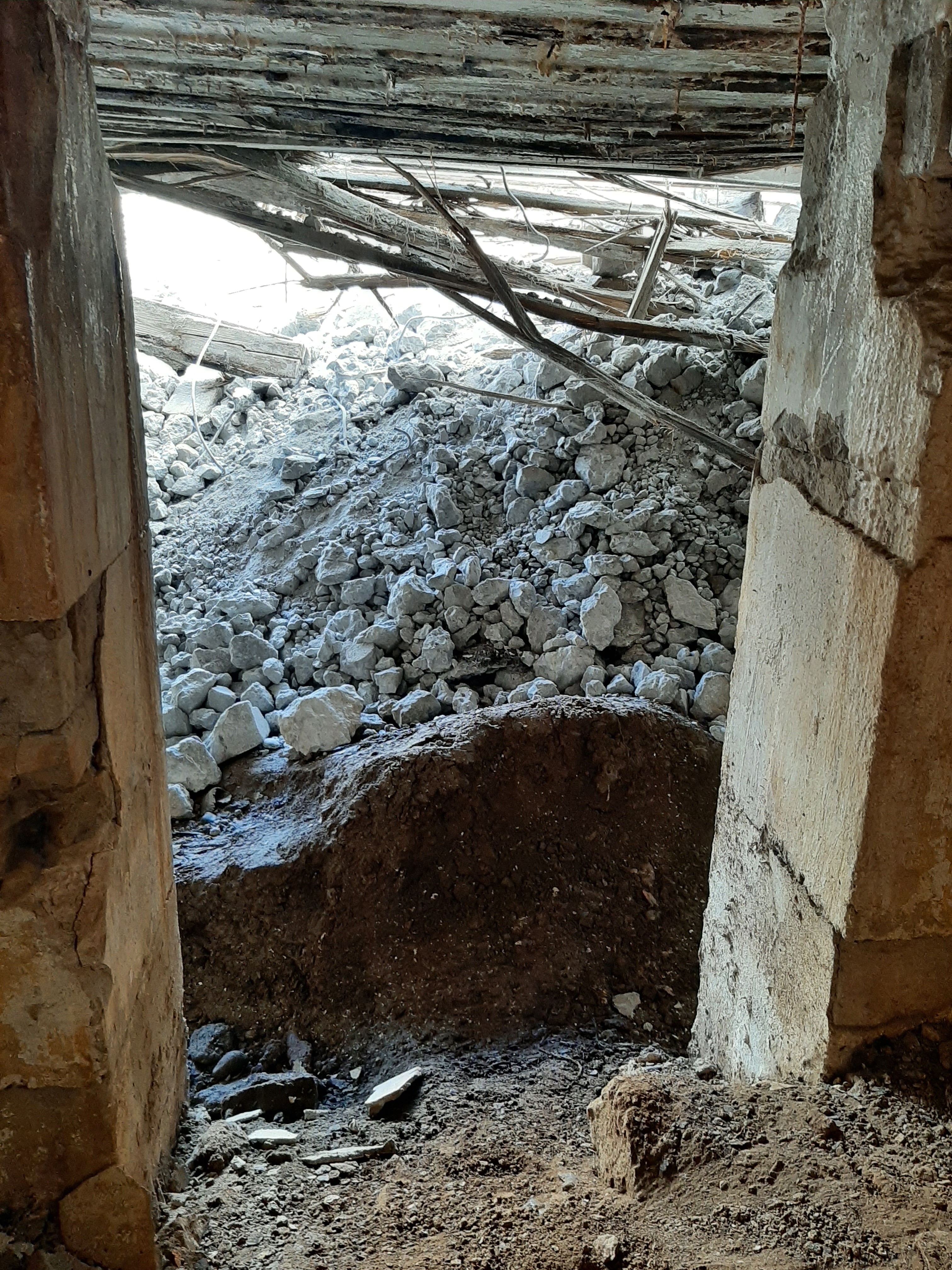 Vue de la déconstruction : entrée de la pièce de vie - chambre de troupe (25 septembre 2022)Immatriculation