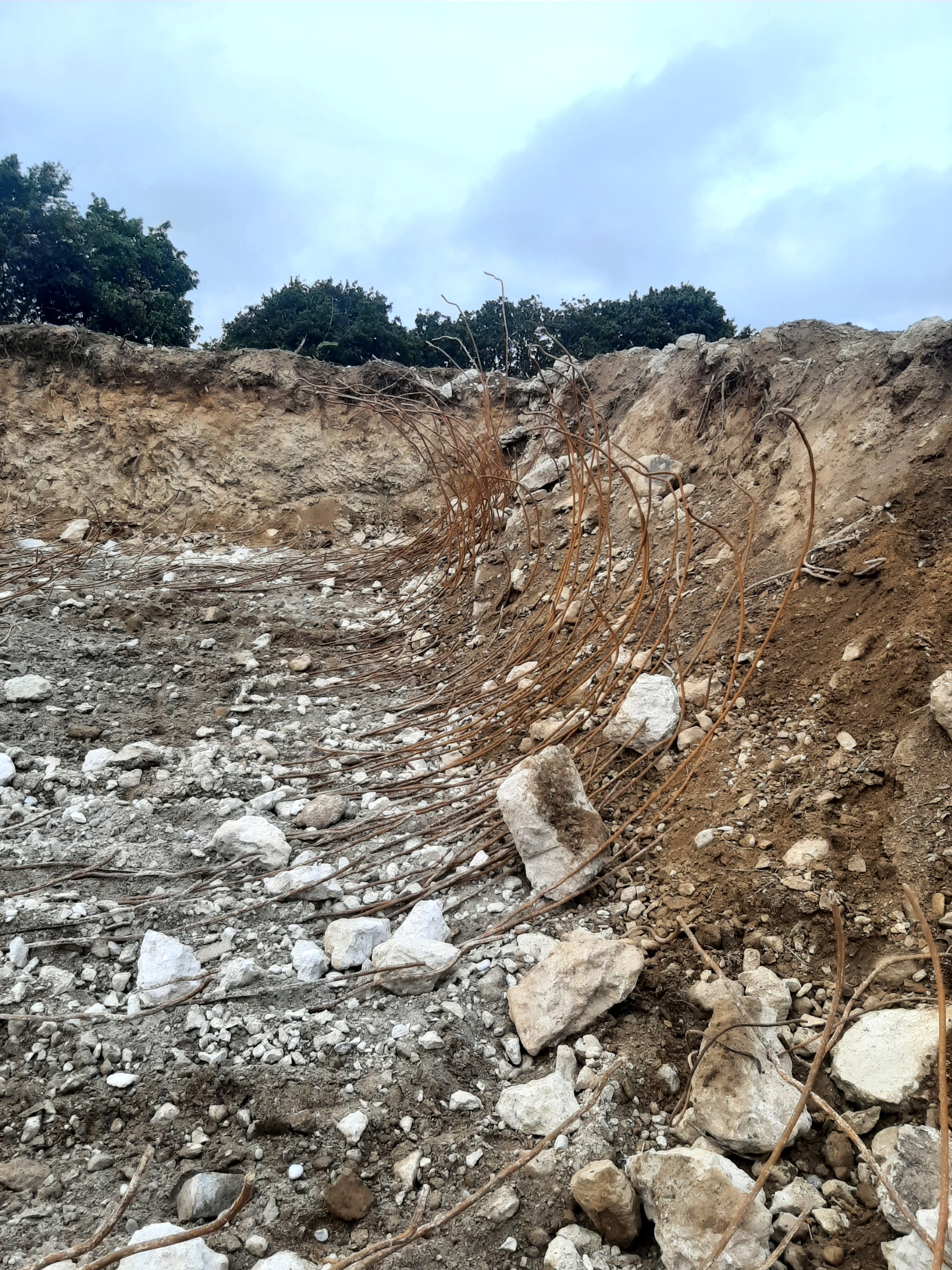 Vue de la déconstruction (1er octobre 2022). Au premier plan : fers et blocs de bétonImmatriculation