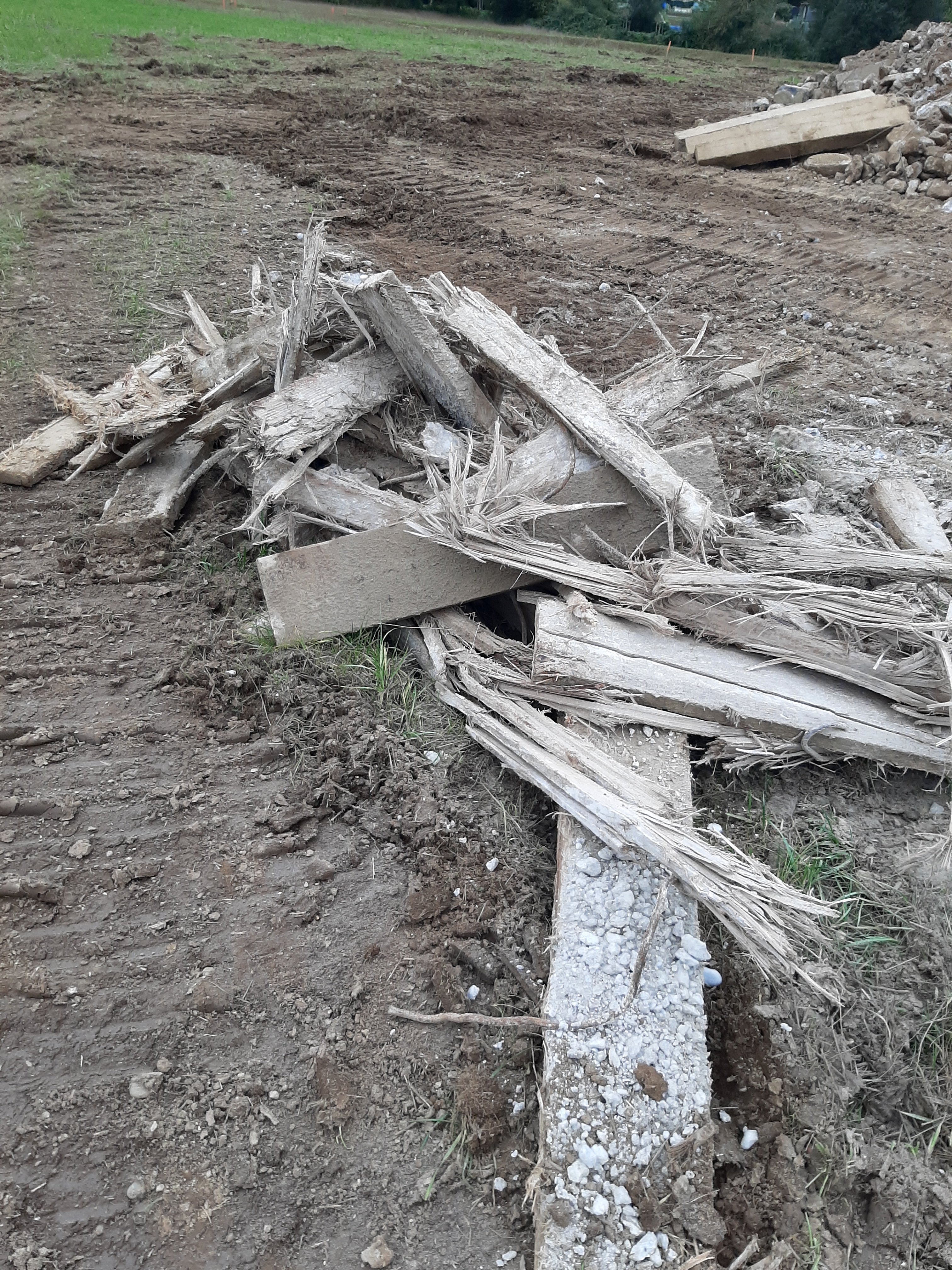 Vue de la déconstruction : vestiges de poutre en bois du plafond (4 octobre 2022)Immatriculation
