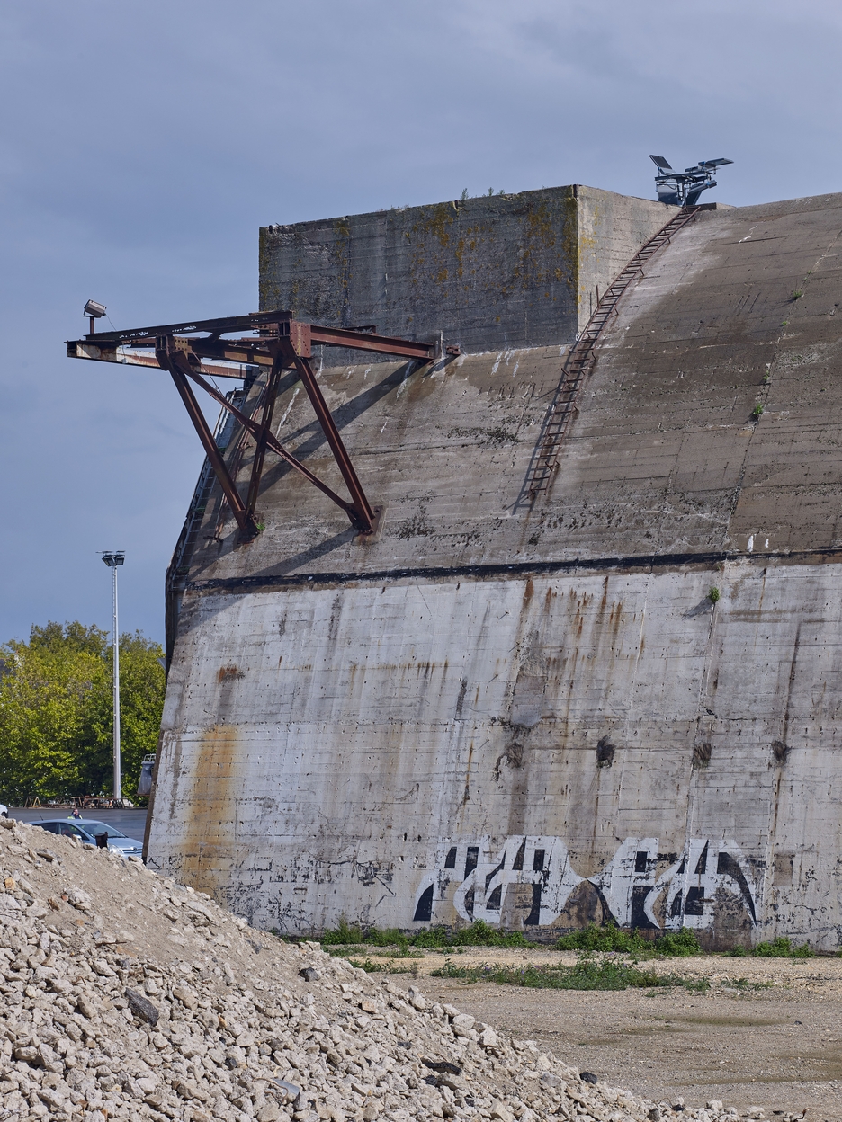 Dom-bunker Ouest T6 avec encuvement pour canon antiaérien puis dit dit bunker-cathédrale usine de construction navale, aire de réparation navale, port de pêche de Keroman (Lorient),
