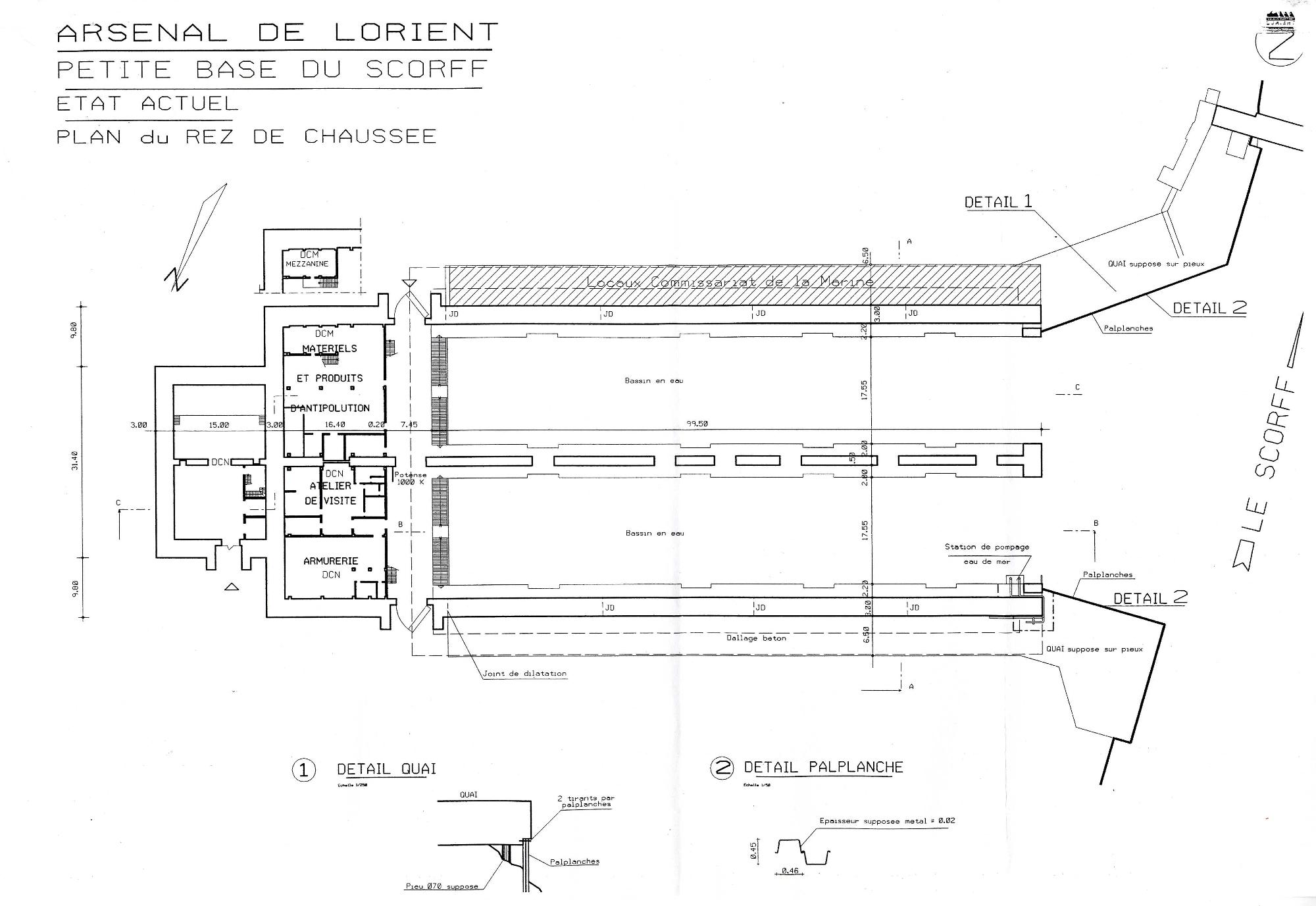 Plan du rez-de-chaussée, non daté, Arsenal de Lorient - Petite base du ScorffImmatriculation