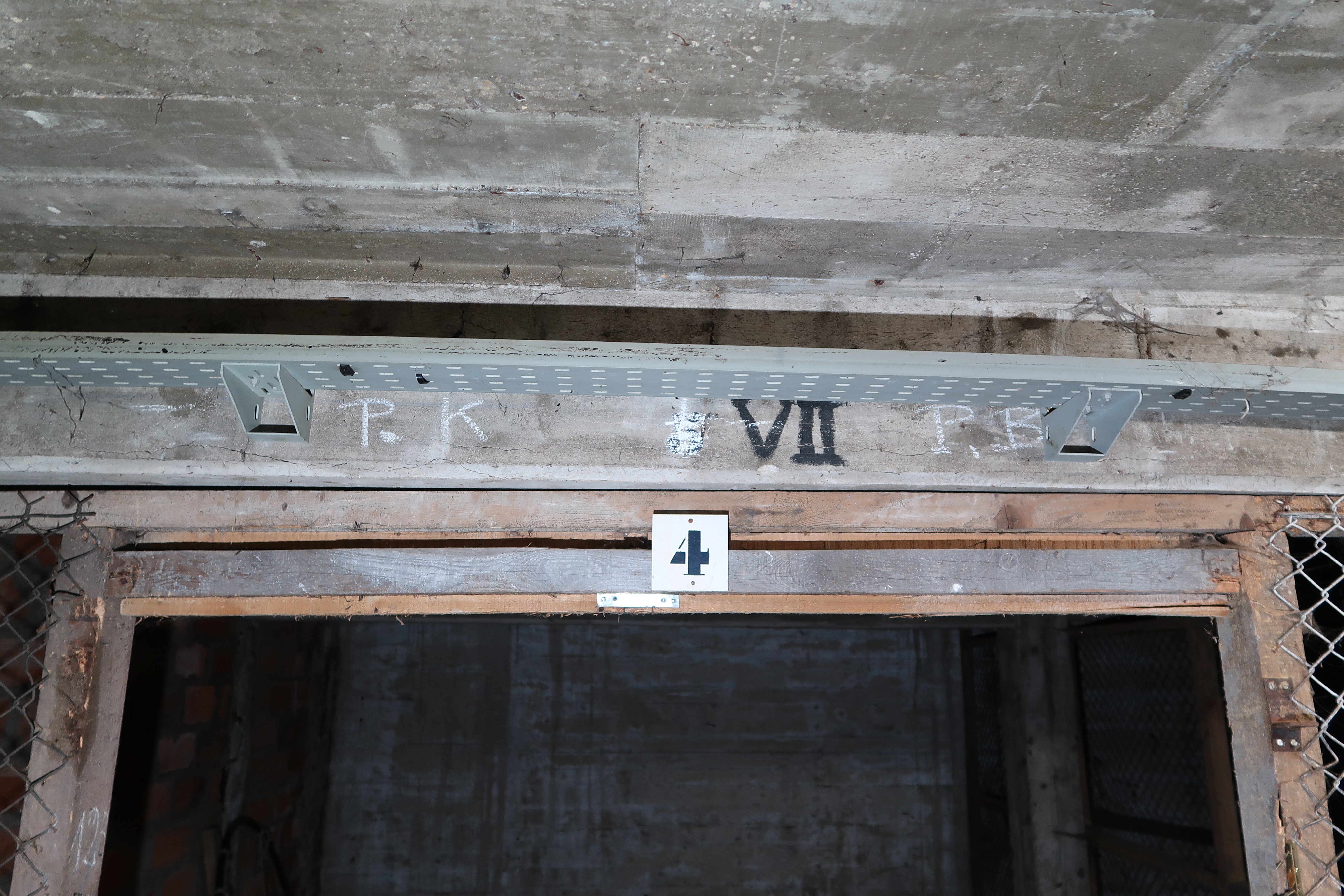 Rez-de-chaussée : marquages "Z"[?], "P. K", "5" [barré], "VII", "P. B" (box 4). "P. K" est l'abréviation en allemand de "Propaganda Kompanie", "compagnie de propagande"Immatriculation