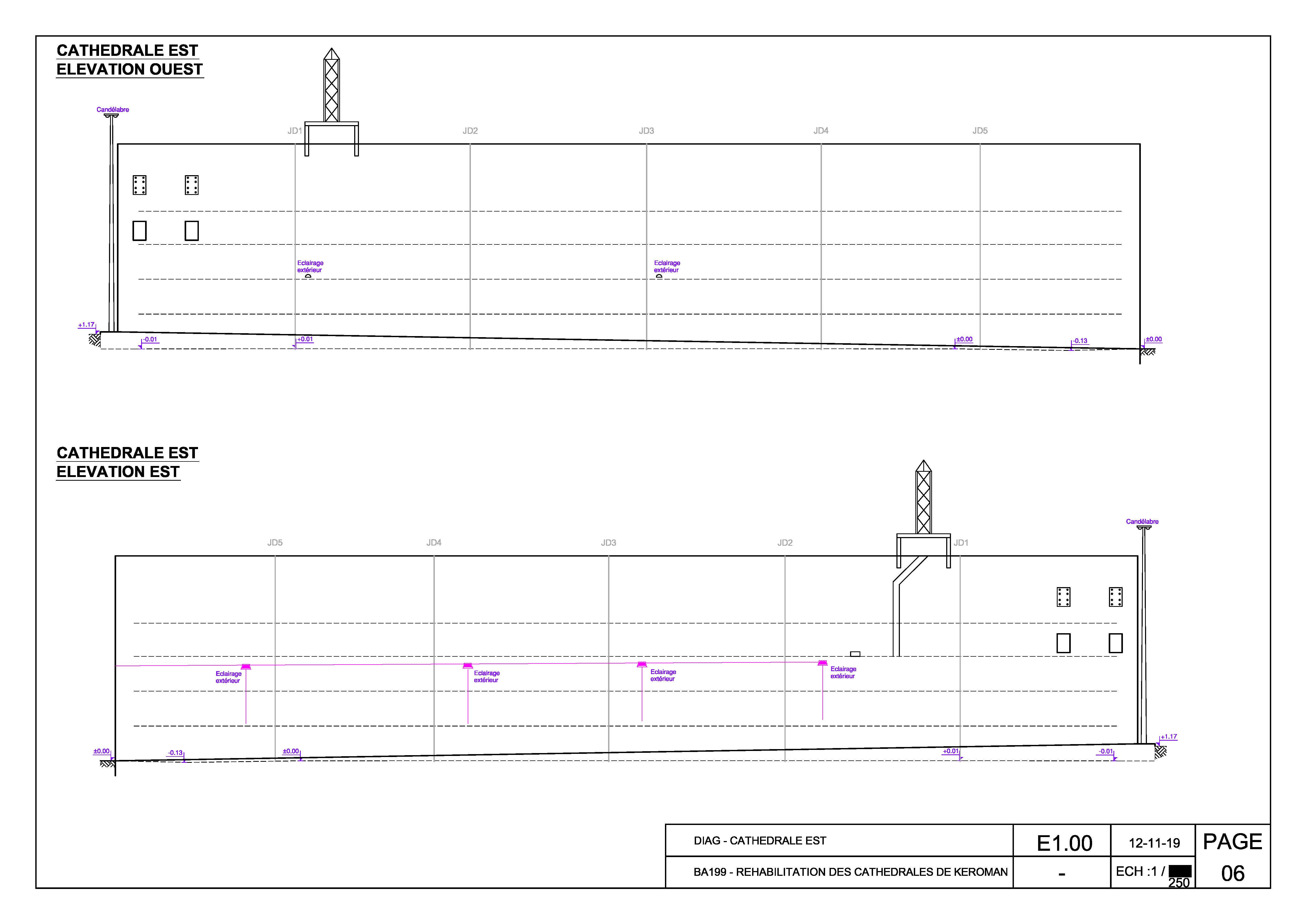 Elévations ouest et est, 2019 (Projet de réhabilitation des cathédrales de l'aire de réparation navale de Lorient-Keroman)Immatriculation