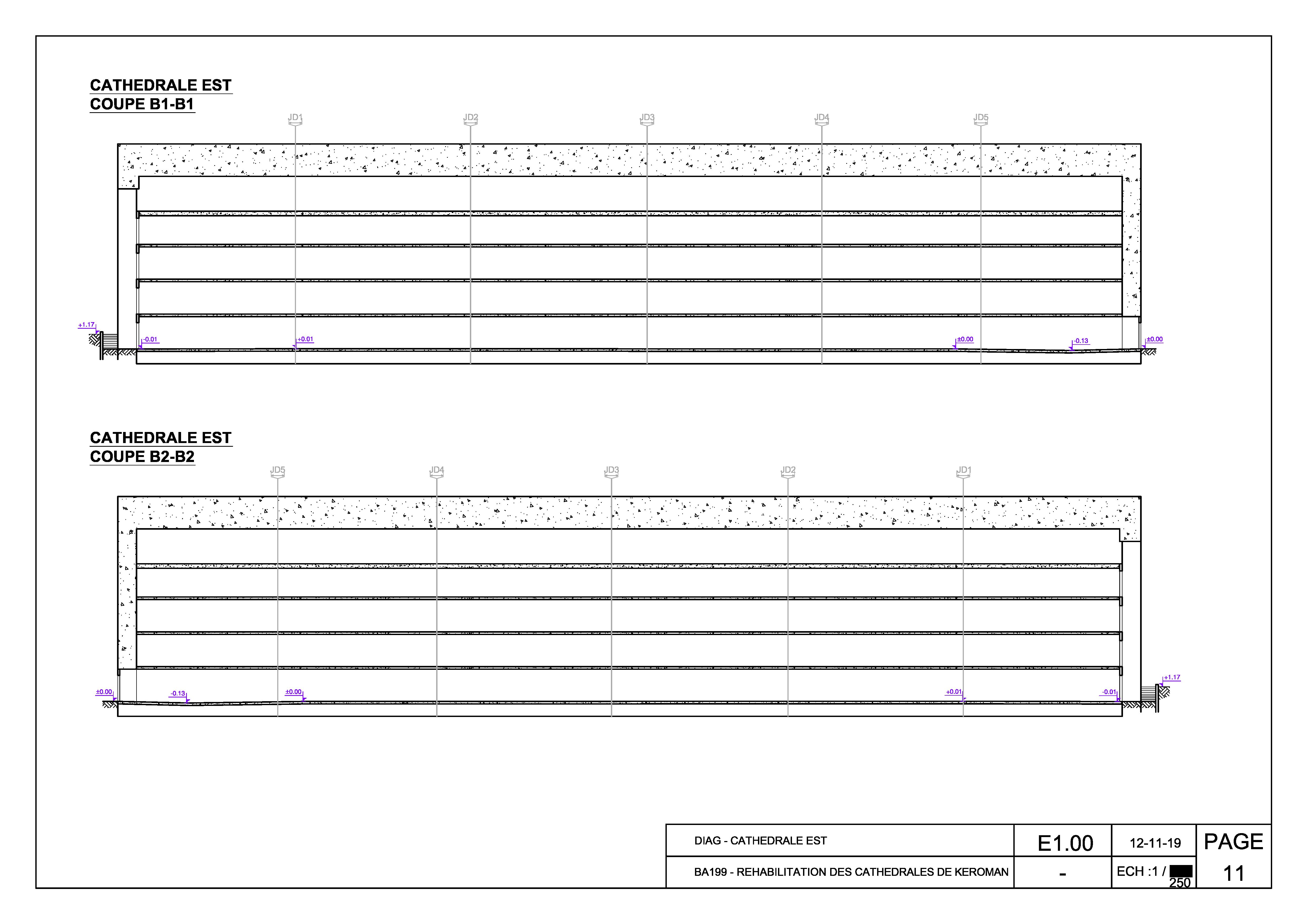 Coupes B1-B1 et B2-B2, 2019 (Projet de réhabilitation des cathédrales de l'aire de réparation navale de Lorient-Keroman)Immatriculation
