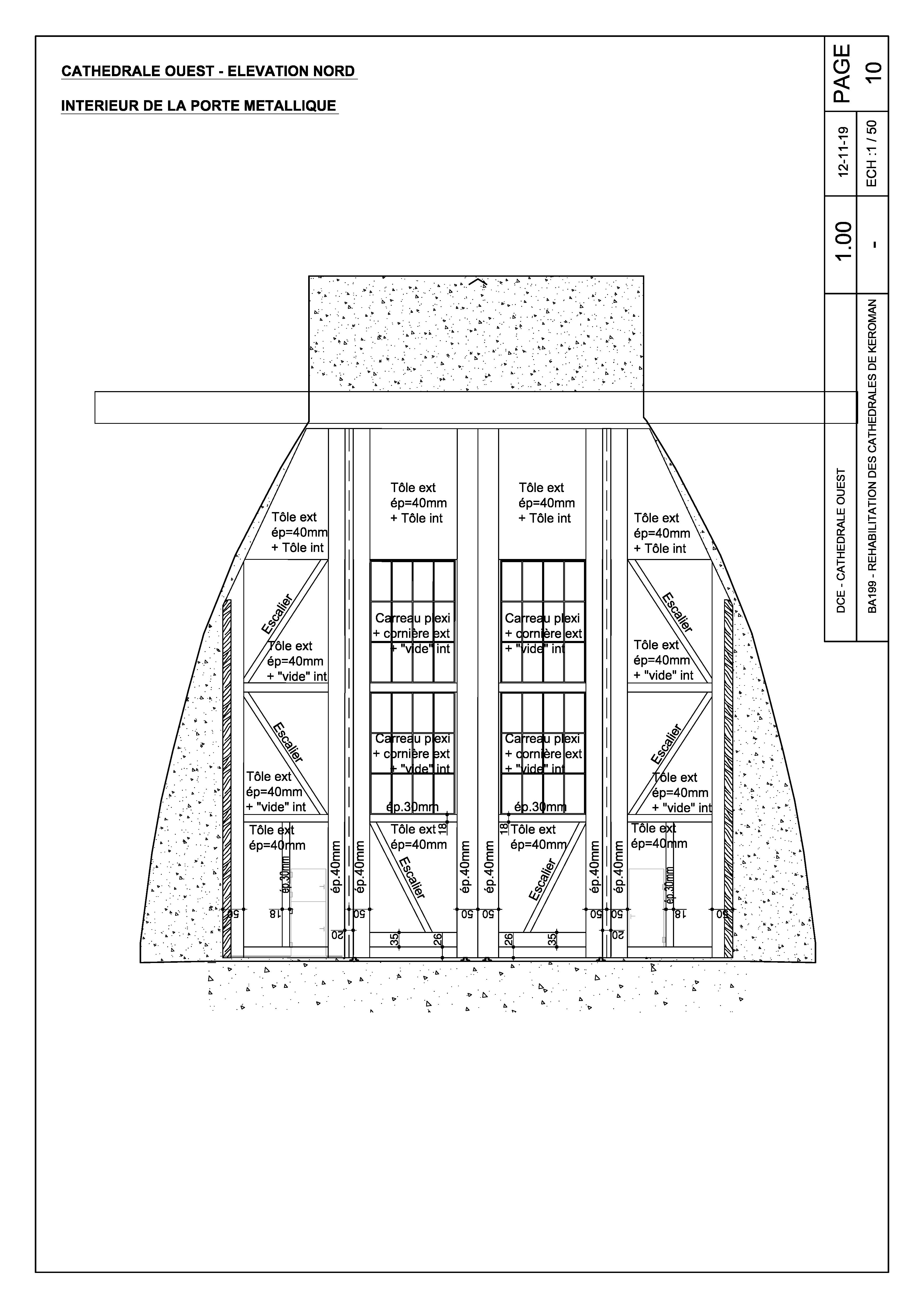 Elévation nord : intérieur de la porte métallique, 2019 (Projet de réhabilitation des cathédrales de l'aire de réparation navale de Lorient-Keroman)Immatriculation