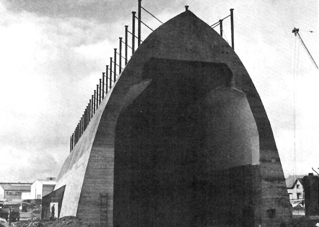 Dom-bunker Ouest T6 avec encuvement pour canon antiaérien puis dit dit bunker-cathédrale usine de construction navale, aire de réparation navale, port de pêche de Keroman (Lorient),