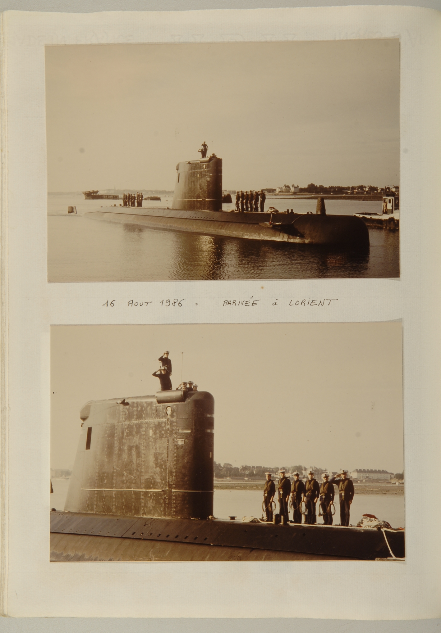 Arrivée à Lorient du sous-marin Agosta, 16 août 1986, extrait du livre d'or du sous-marin AgostaImmatriculation
