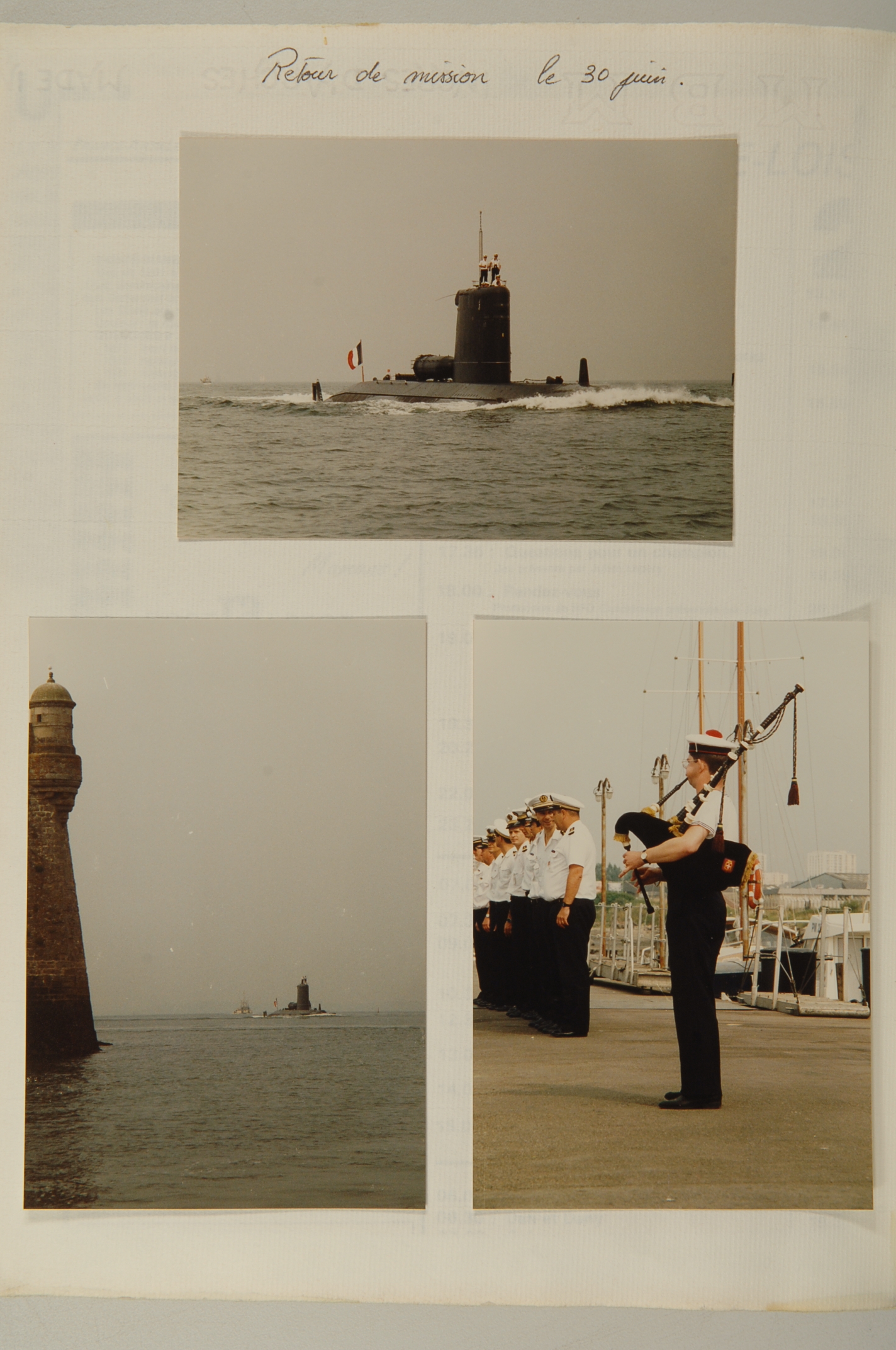 Retour de mission à Lorient, 30 juin ?, extrait du livre d'or du sous-marin AgostaImmatriculation