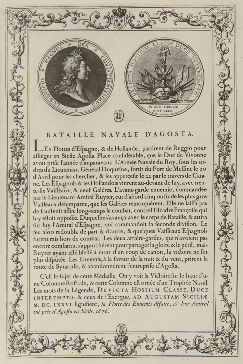 Médailles commémoratives de la Bataille navale d'Agosta en Sicile (21 avril 1676), extrait du livre d'or du sous-marin AgostaImmatriculation