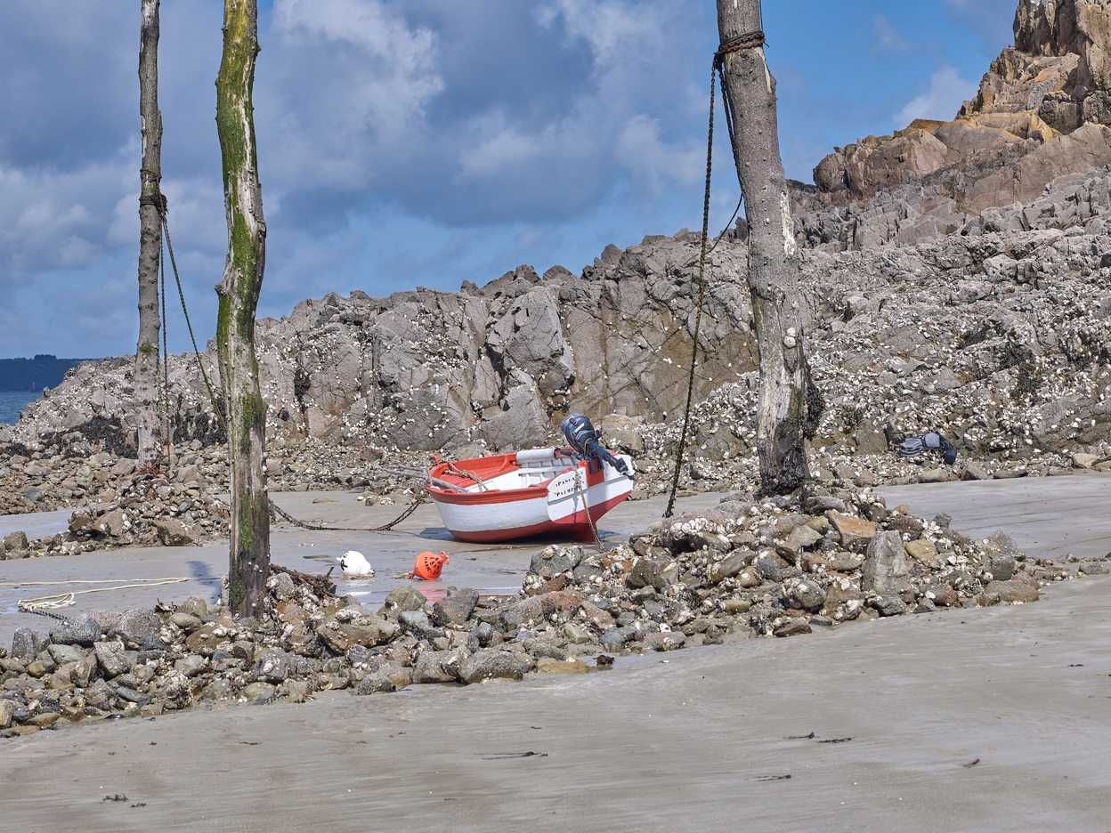 A marée basse, vue des enrochements au pied des mouillagesImmatriculation