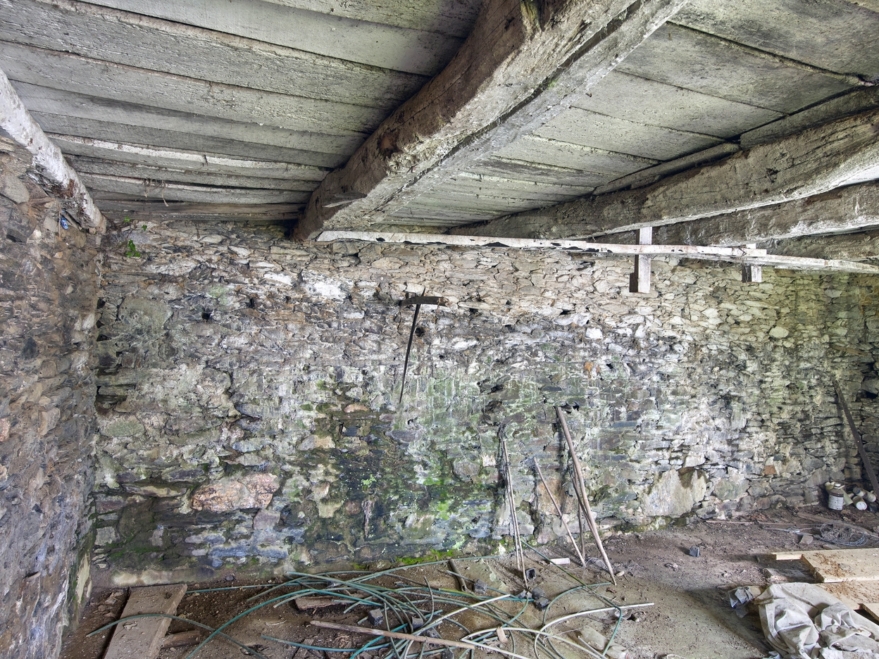 Logis sur dépendance construit en retour d'équerre de la sècherie. Vue intérieure du rez-de-chaussée.Immatriculation