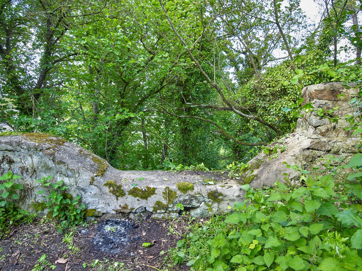 Vue du parapet du mur de clôture et de soutènement ceinturant le domaine : emplacement de tir situé à l'extrémité Est de la pointeImmatriculation