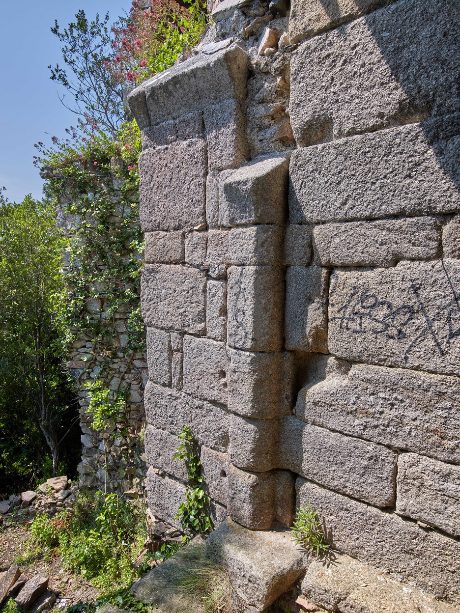 Vue du rez-de-chaussée surélevé : passage d'entrée du pont-levis vers l'Ouest. A droite, départ d'arc de la porteImmatriculation