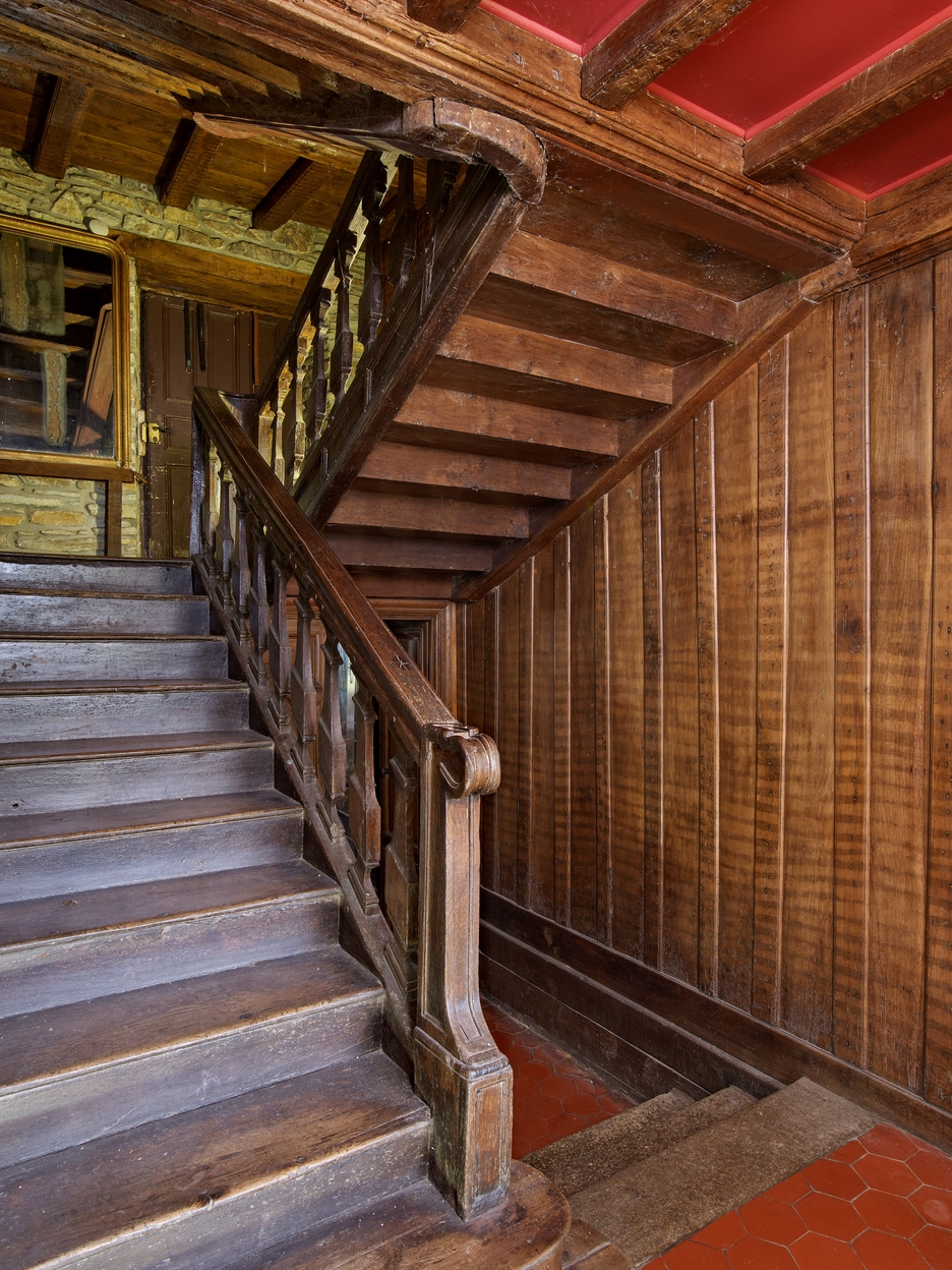 Logis. Vestibule d'entrée. Escalier construit entre le mur de refend et une cloison en menuiserieImmatriculation