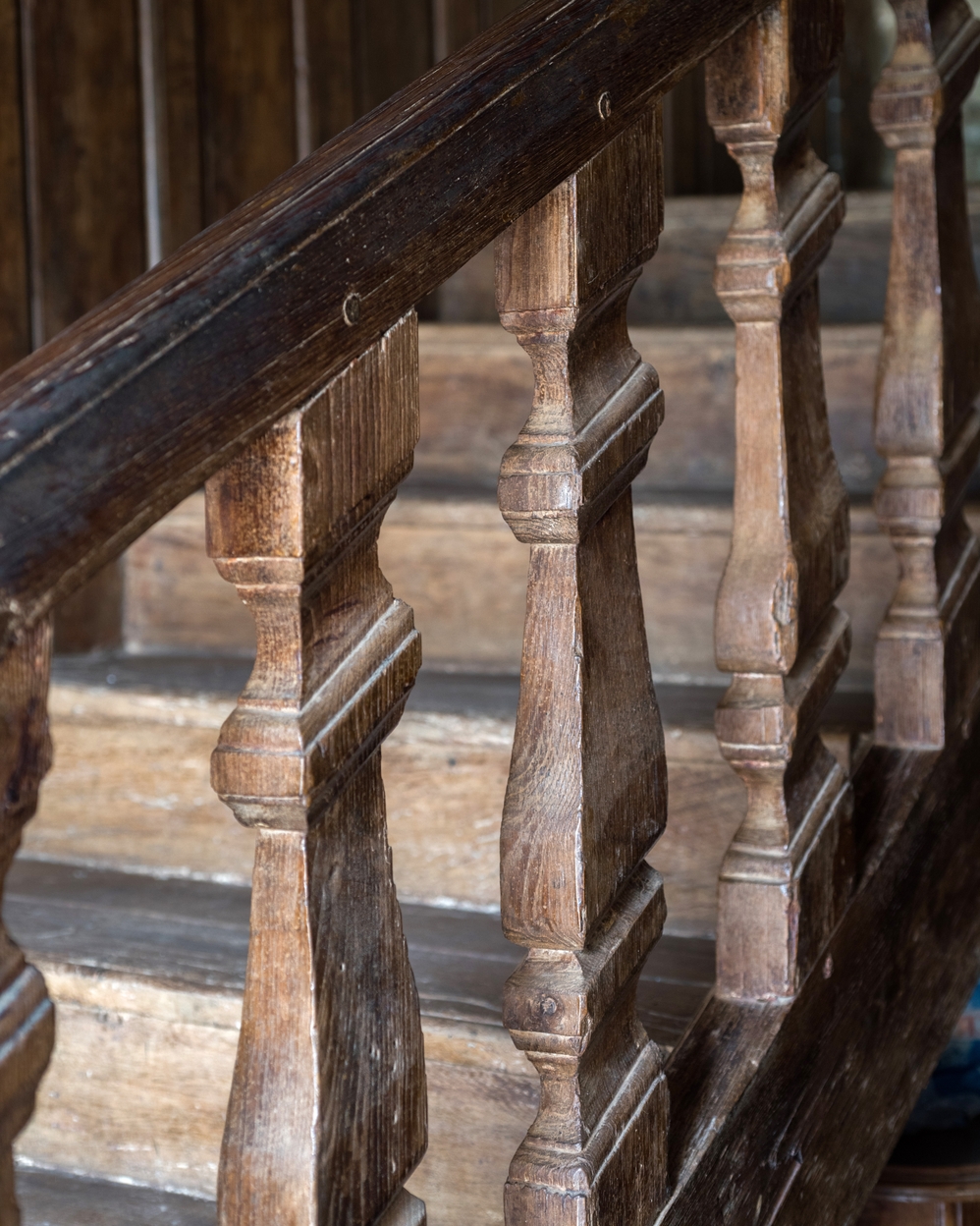 Logis 1774. Vestibule d'entrée. Escalier tournant à retours avec jour. Détail des balustresImmatriculation