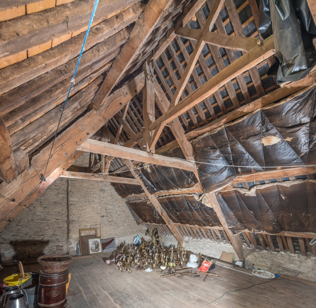 Logis 1774. Charpente à double faîtage. Vue généraleImmatriculation