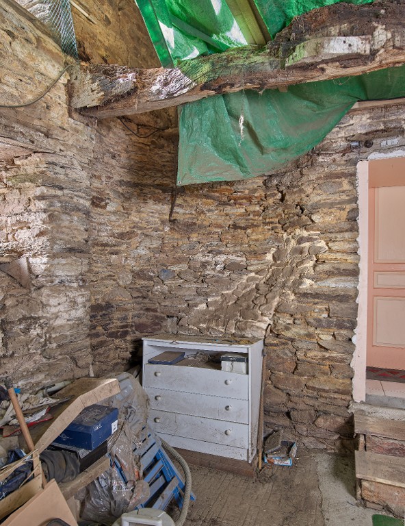 Logis à fonctions multiples, 2e moitié 17e siècle. Salle, angle sud-ouest. Emplacement de l'escalier en vis aujourd'hui disparuImmatriculation