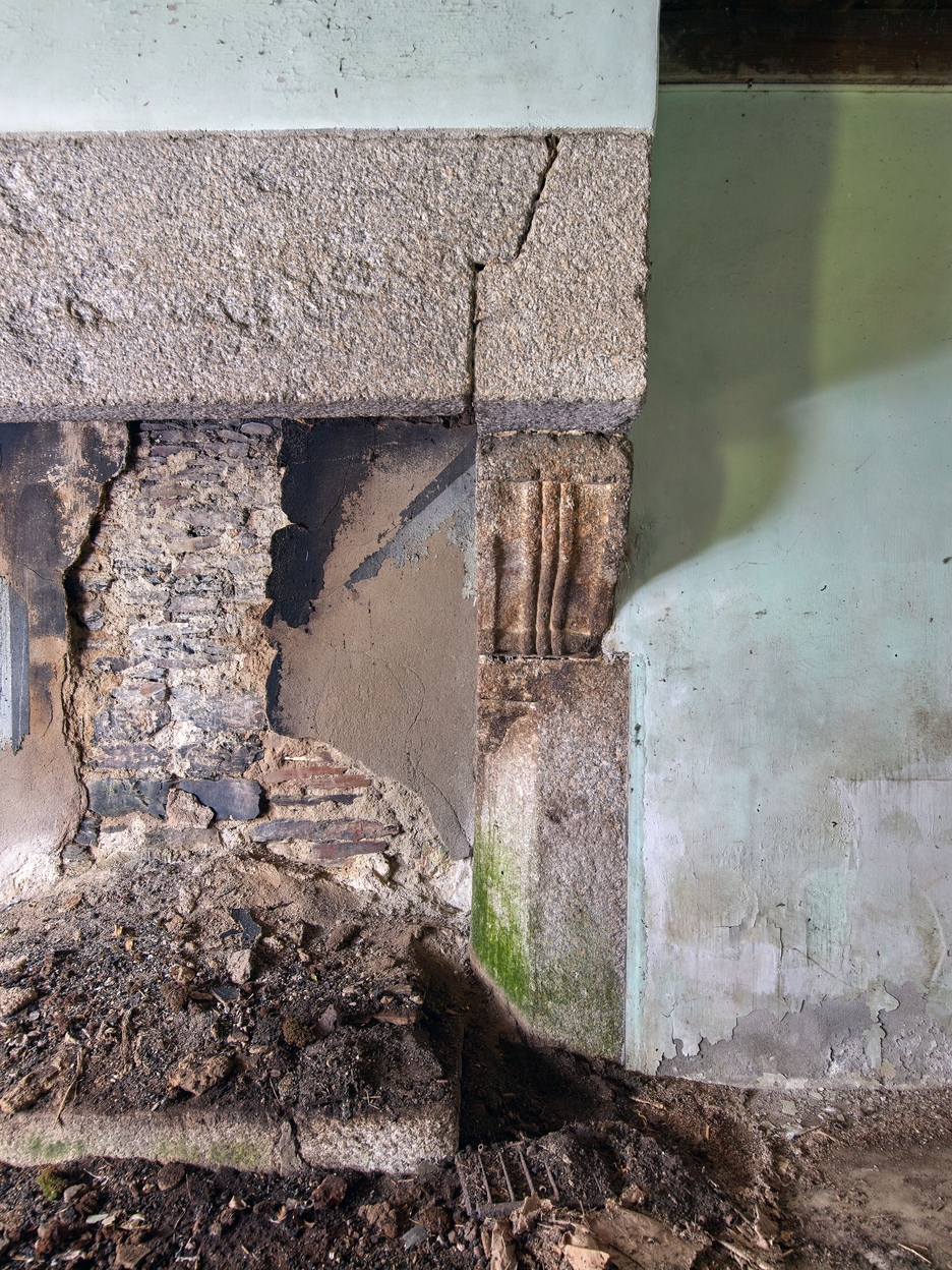 Logis début 17e siècle. Cheminée de la salle. Détail du linteau, de la console et du piédroitImmatriculation