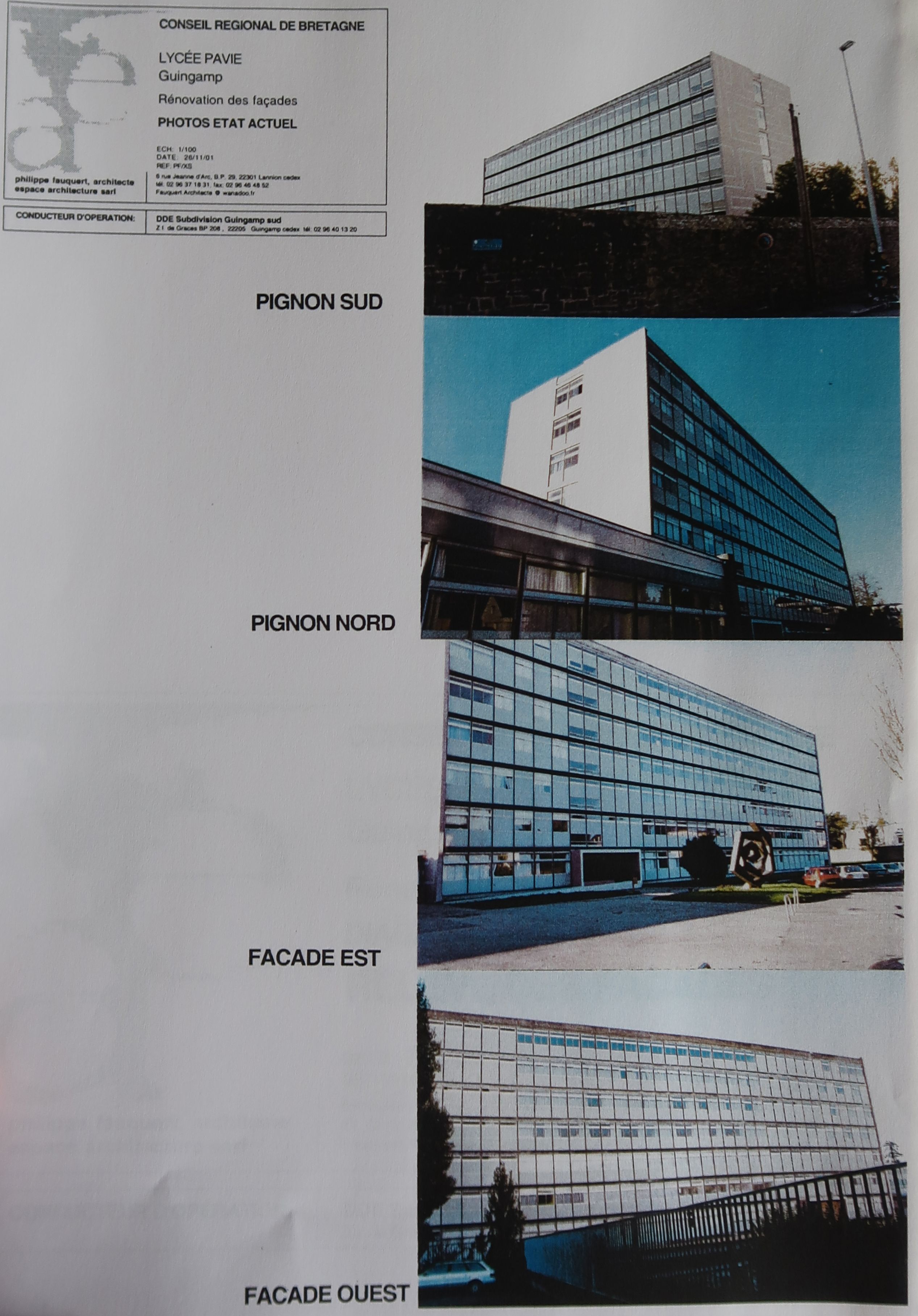 Les façades de l'internat avant restructuration (début des années 2000). Le décor en granite du pignon nord avait déjà été occulté.Immatriculation