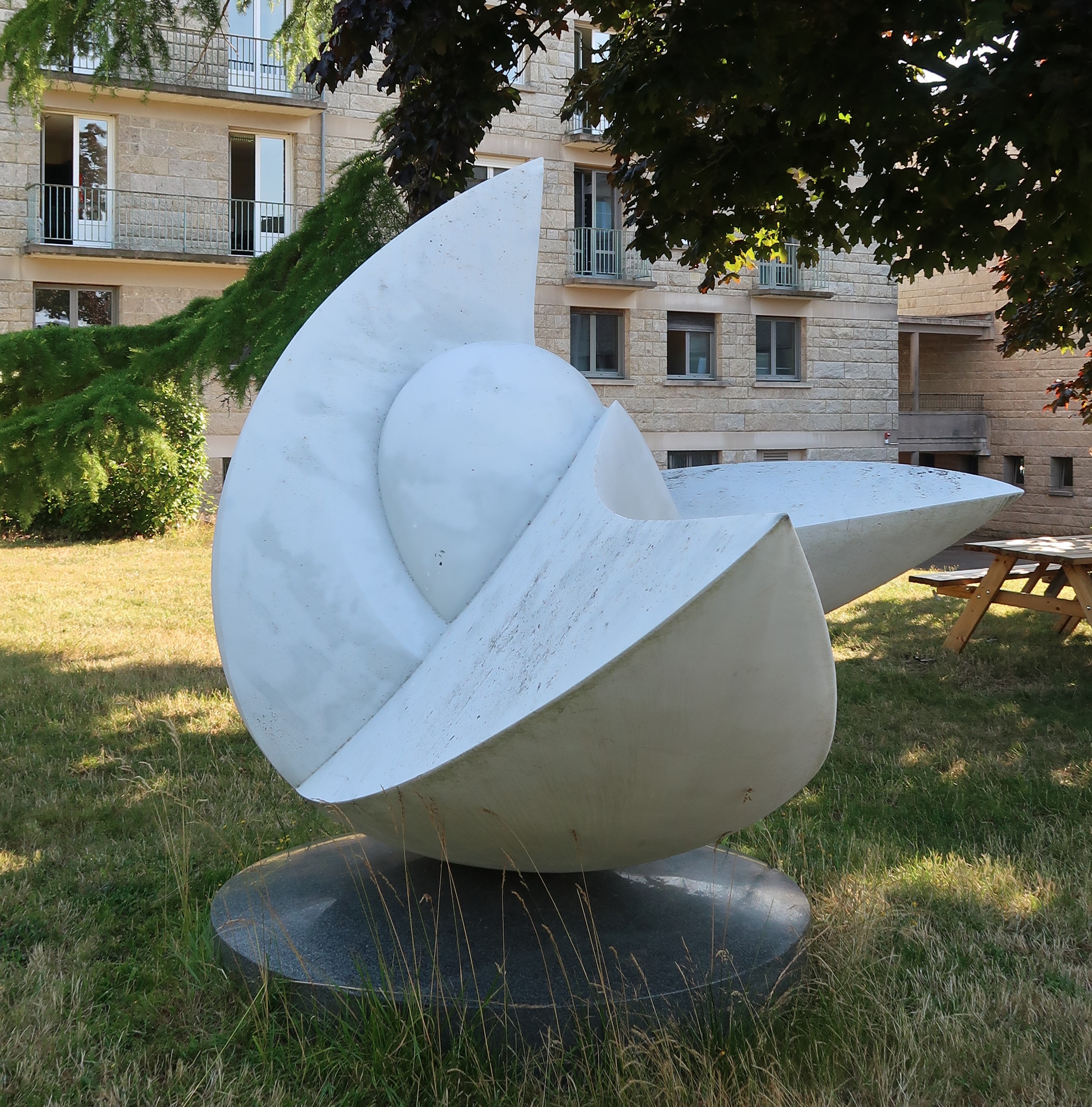 Viliano Tarabella : "Envol", sculpture en marbre, vers 1975-1976. Vue de d'ensemble.Immatriculation
