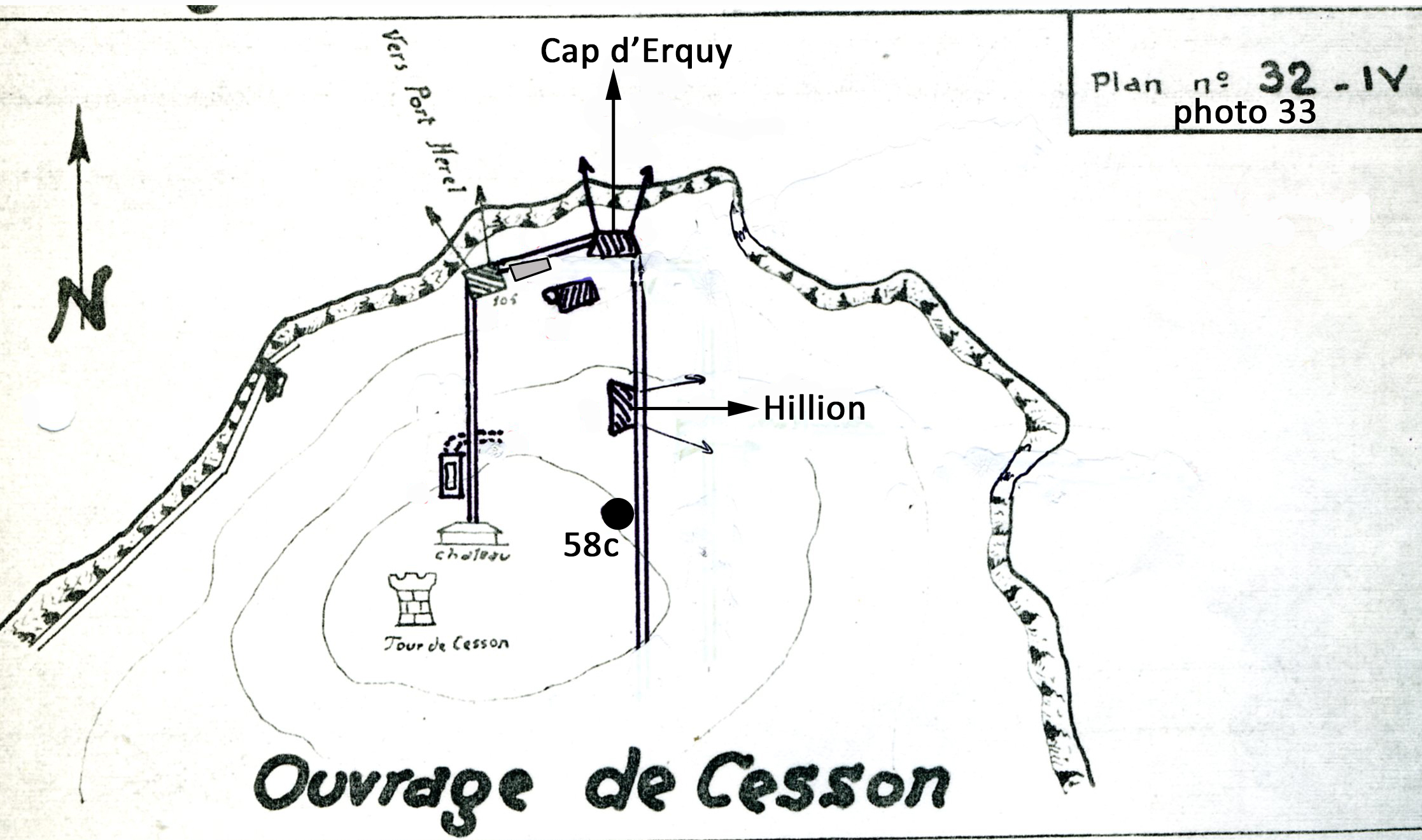 Plan schématique de l'ensemble fortifié de la Pointe de Cesson, extrait du rapport Pinczon du Sel, plan n° 32 IV (collection : Alain Bohée)Immatriculation