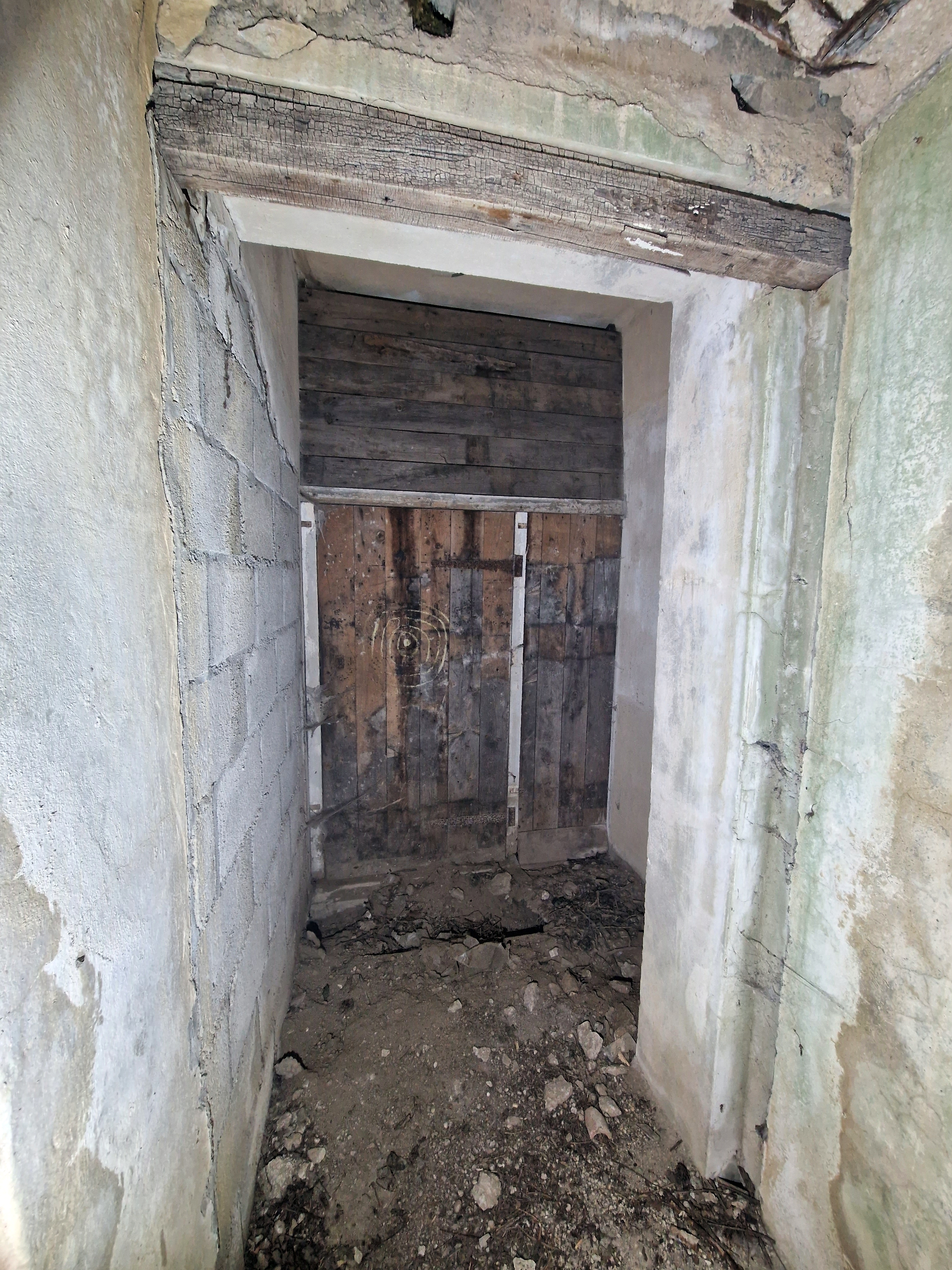 Vue du couloir est depuis le vestibule : il est fermé par une porte en boisImmatriculation