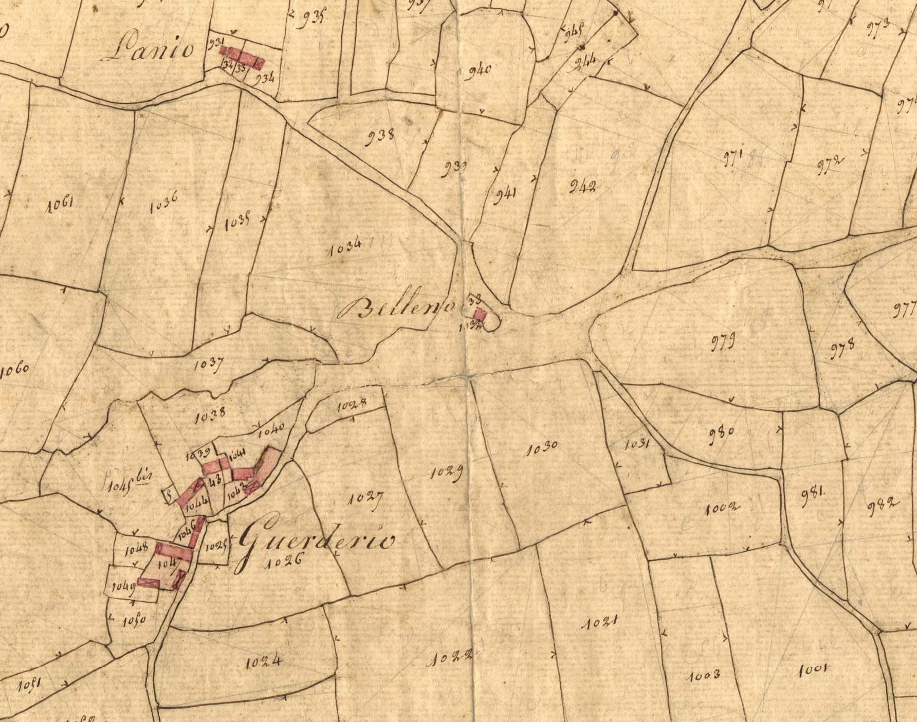 Guerderio en 1828. Extrait du cadastre ancien, section A3 (Archives départementales des Côtes-d'Armor, série P, sous série 3 P 265)Immatriculation