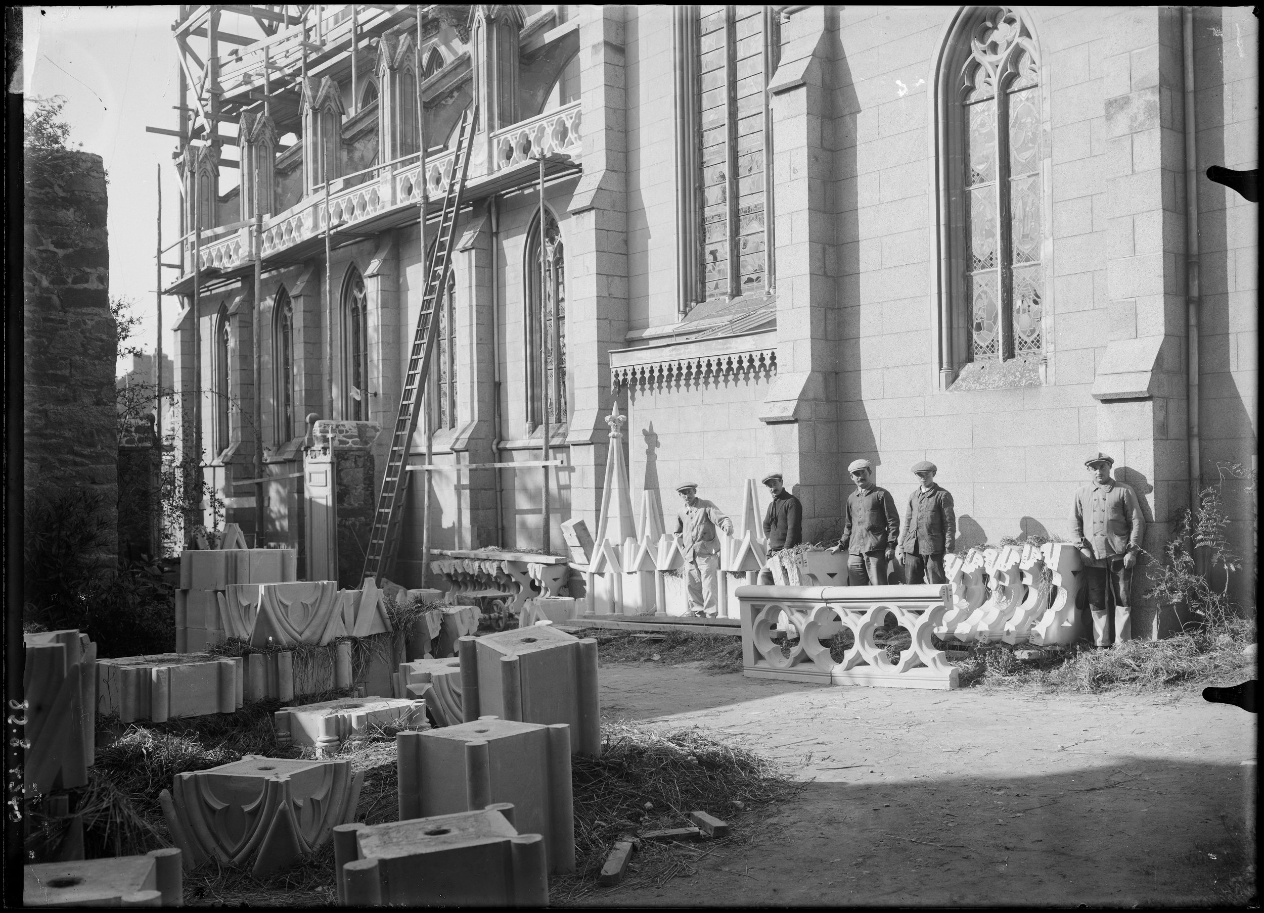 Photographie du chantier de restauration des pinacles et balustres de la basilique Notre-Dame-d'Espérance, 1927