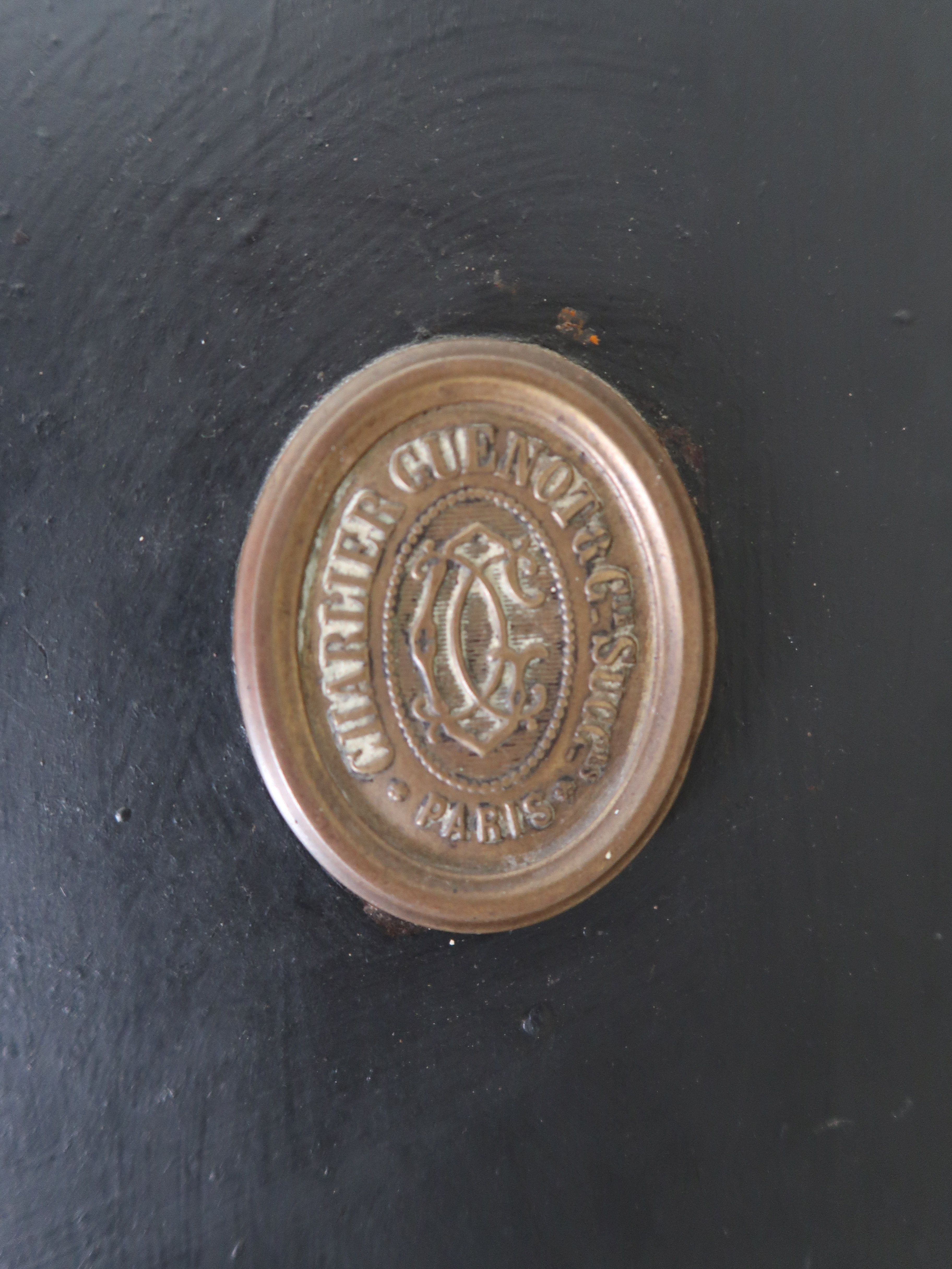 Sacristie, coffre-fort Charlier et Guenot : estampille présente sur la porte du coffre-fortImmatriculation