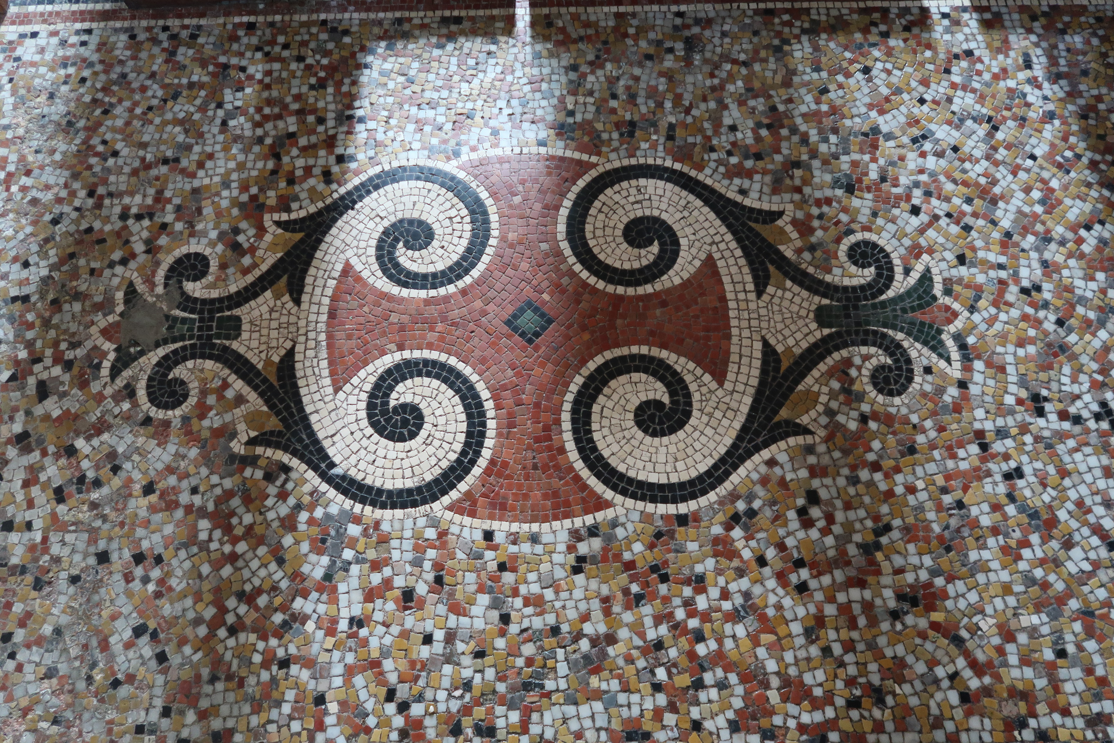 Détail des décors de mosaïque Odorico couvrant le sol de l'église