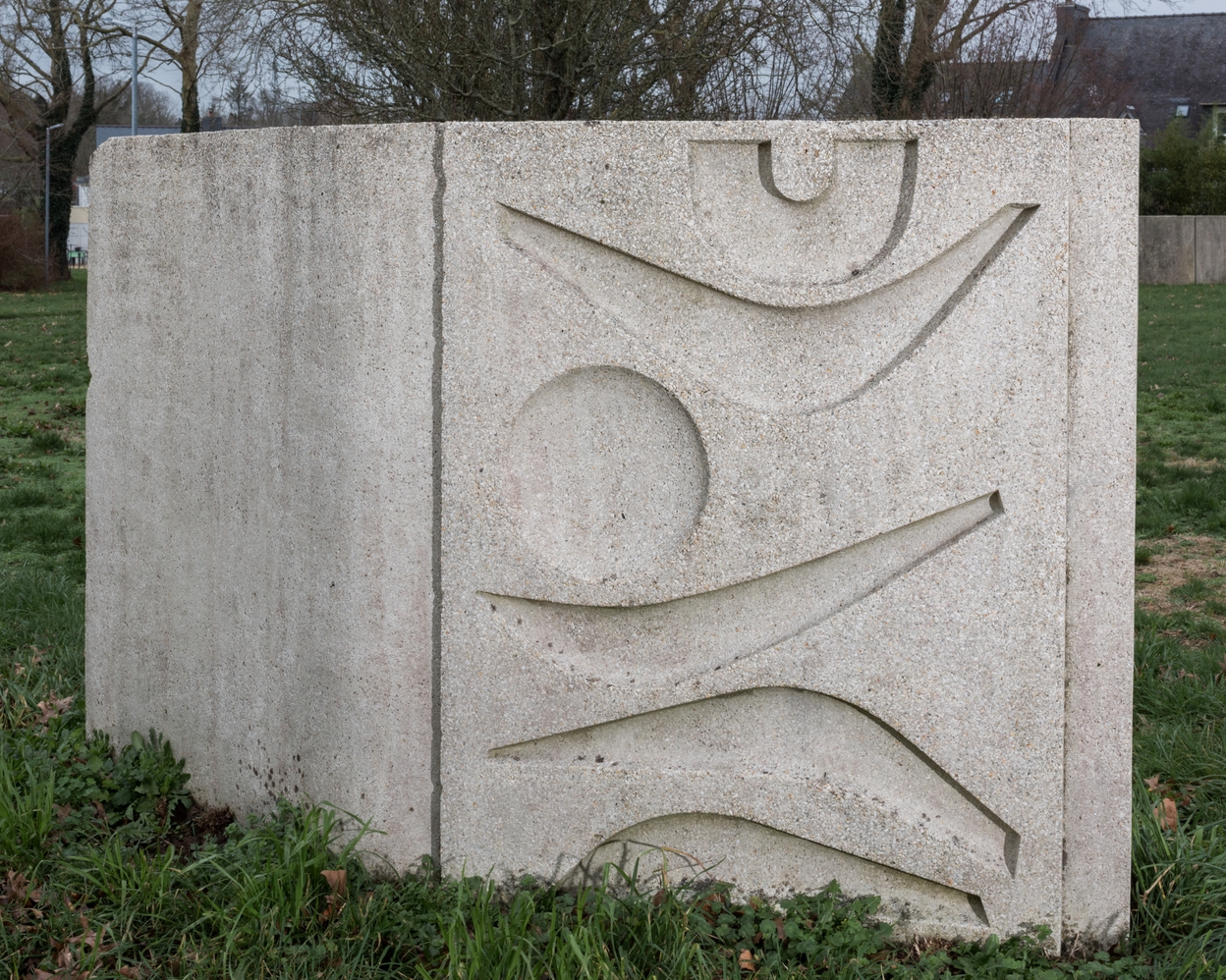 Un élément du mur sculpté, implanté le long de la galerie couverte, entre l'externat et les internats (Edgard Pillet), 1970.Immatriculation