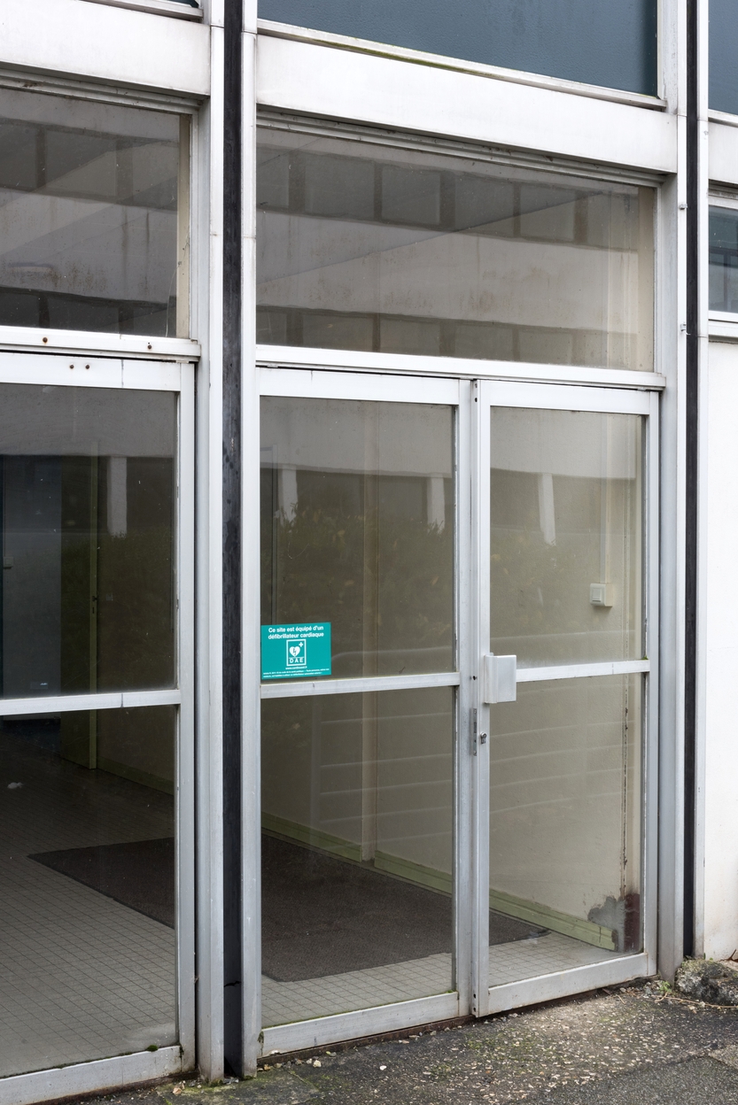 Entrée des anciens ateliers. Roger Dhuit, Jean-Claude Dondel, Jean de Jaegher, architectes, 1967.Immatriculation