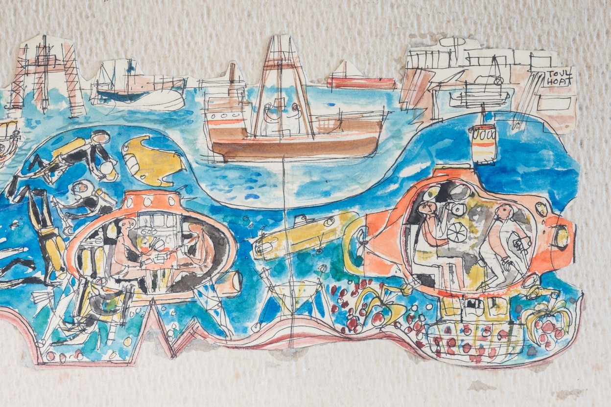Pierre Touhoat, détail d'une maquette pour un bas-relief sur le thème d'une expédition scientifique, réalisé pour le Centre National pour l'Exploitation des Océans (CNEXO), actuel Institut Français de Recherche pour l'Exploitation de la Mer (IFREMER).Immatriculation