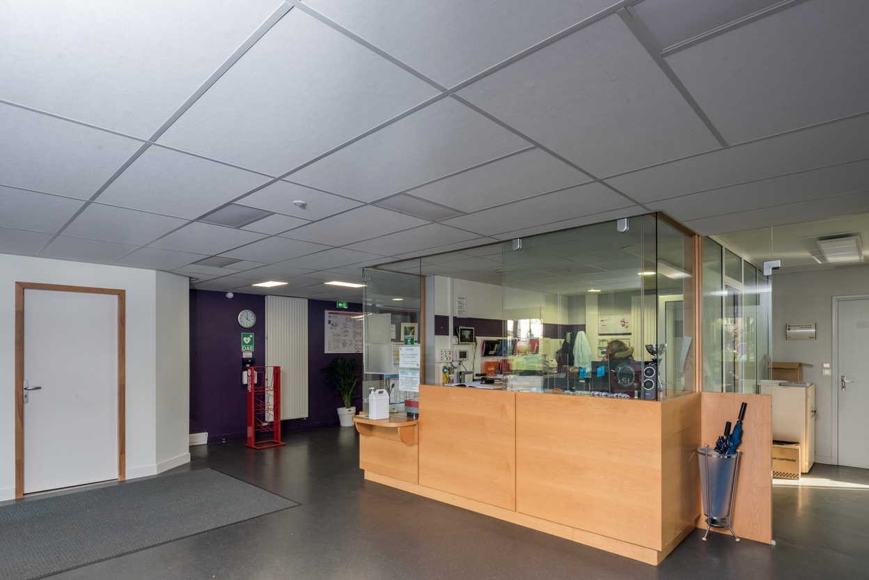 Vue intérieure du hall d'entrée et de la loge d'accueil.Immatriculation