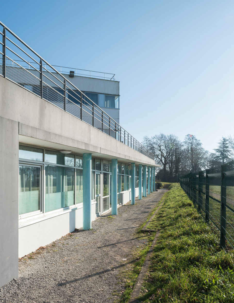 Façade sud de l'externat de 2001 (P. Ruelland et M. Quéré, architectes).Immatriculation