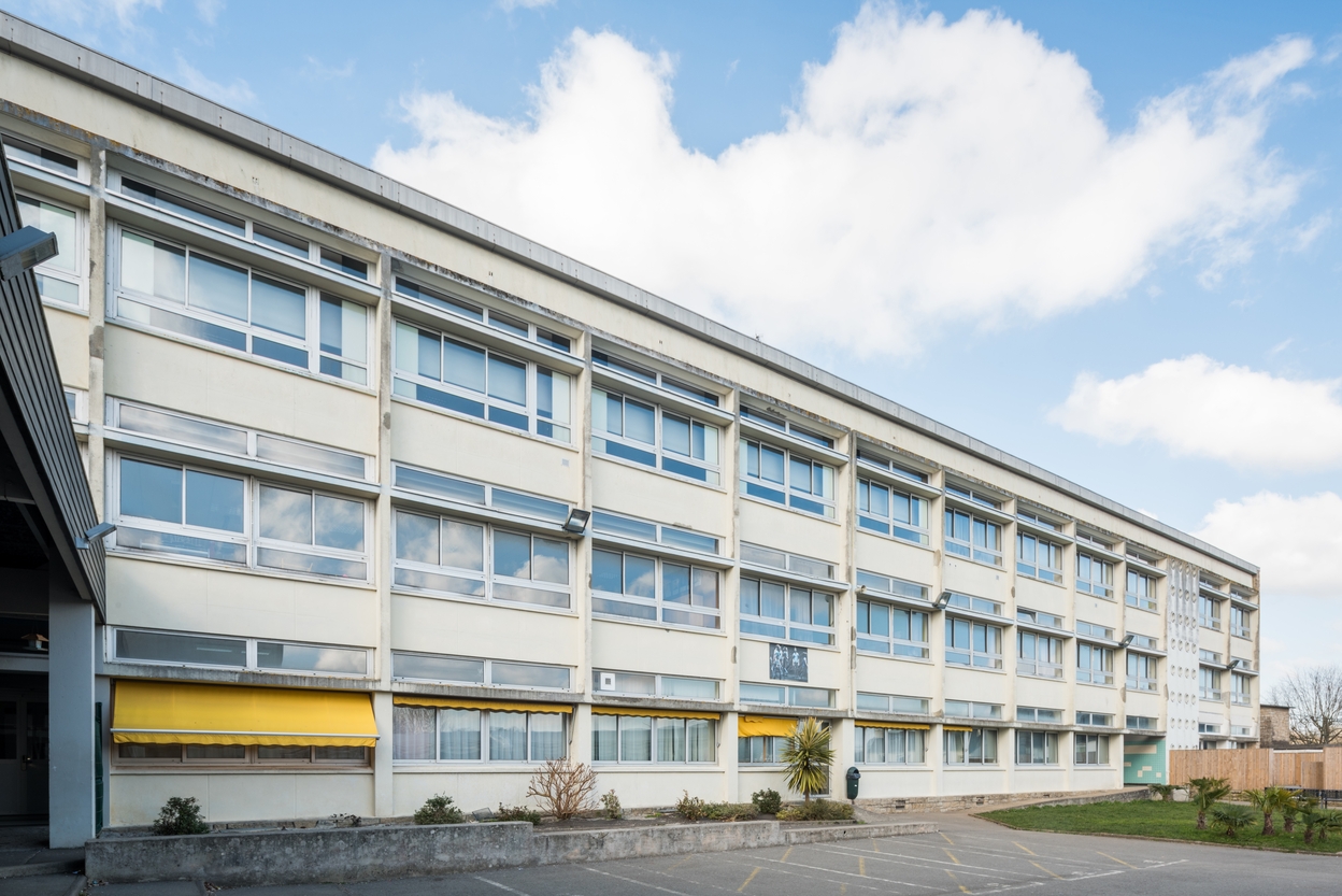 Externat, façade sud. Raymond Lopez, architecte, 1958.Immatriculation