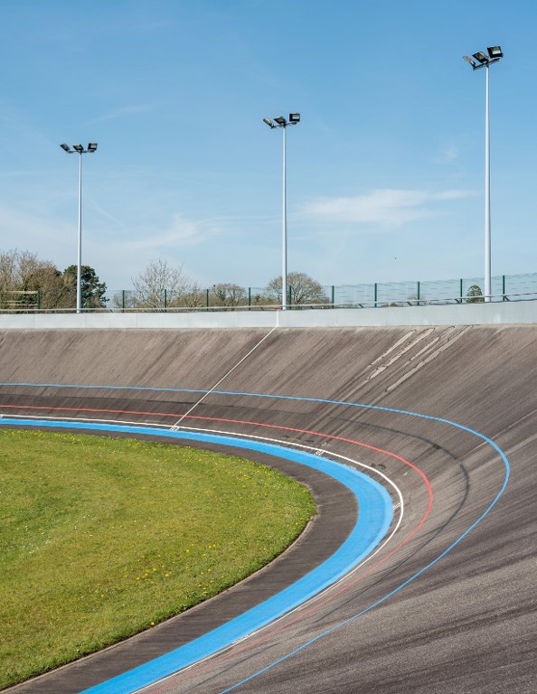 Anneau cycliste de 250 mètres pour 7 mètres de largeur ; l'inclinaison maximale est de 37 degrés.Immatriculation