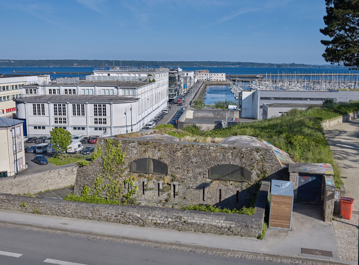 Vue générale des immeubles de bureaux et de logements implantés sur le quai Malbert et du port de plaisance du ChâteauImmatriculation