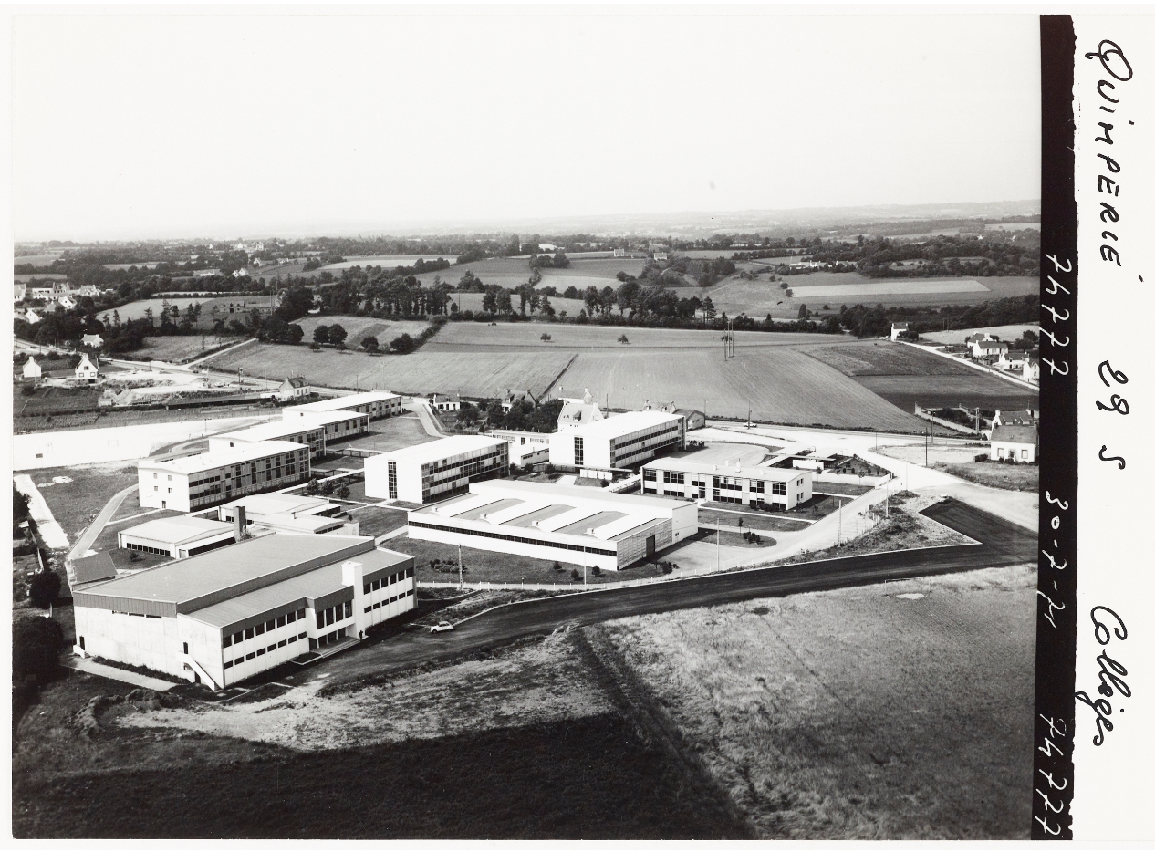 Musée de Bretagne (Rennes) : 974.0071.158.8 ; 974.0071.158.7 ; 971.0037.13054.2 ; 971.0037.11365.2. Heurtier, Vues aériennes de la cité scolaire Kerneuzec, 1967, 1969, 1971