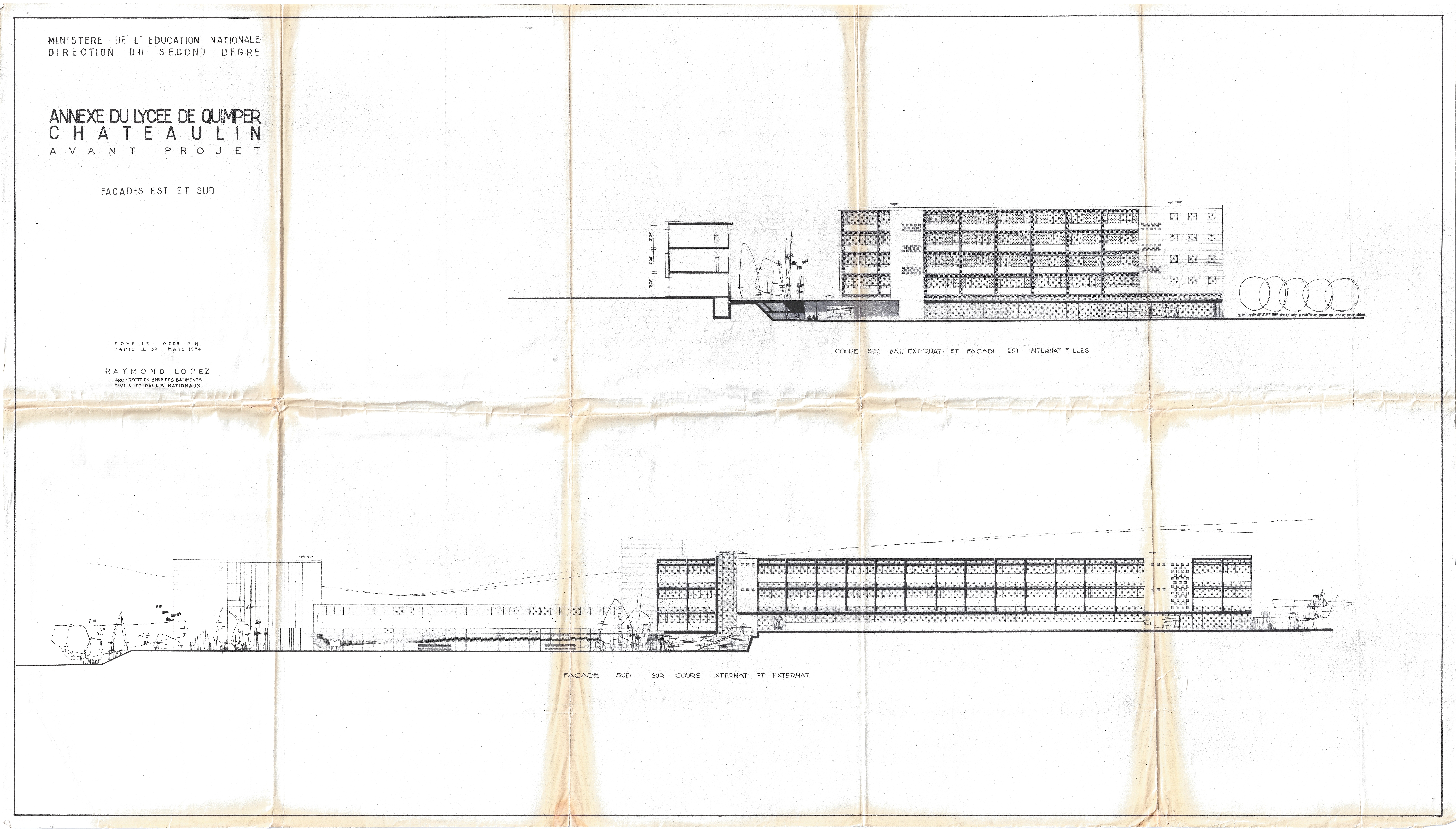 Façades est et sud. Raymond Lopez, architecte, 1954.Immatriculation