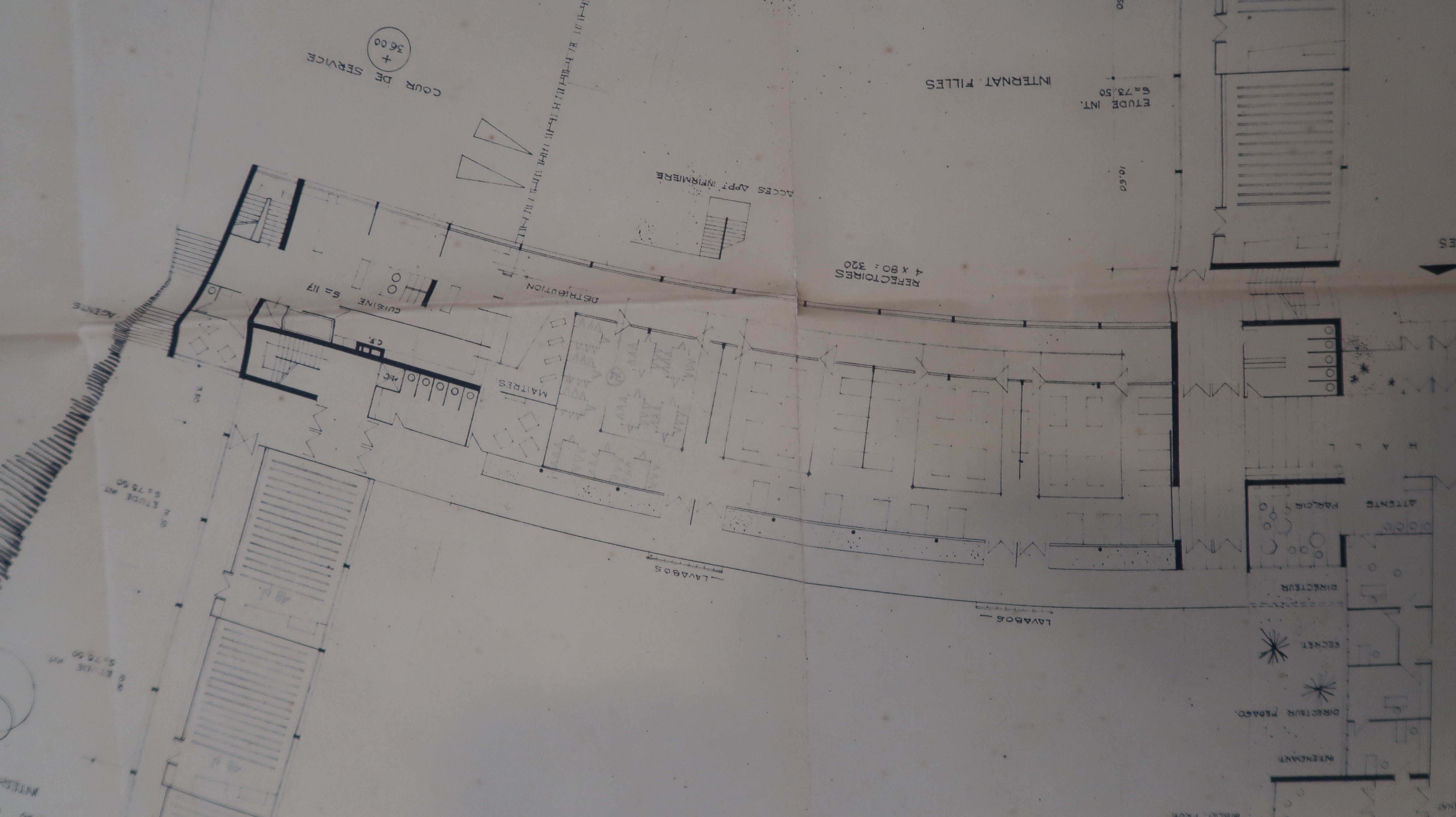 Plan des réfectoires et cuisine. Raymond Lopez, architecte, 1956.Immatriculation