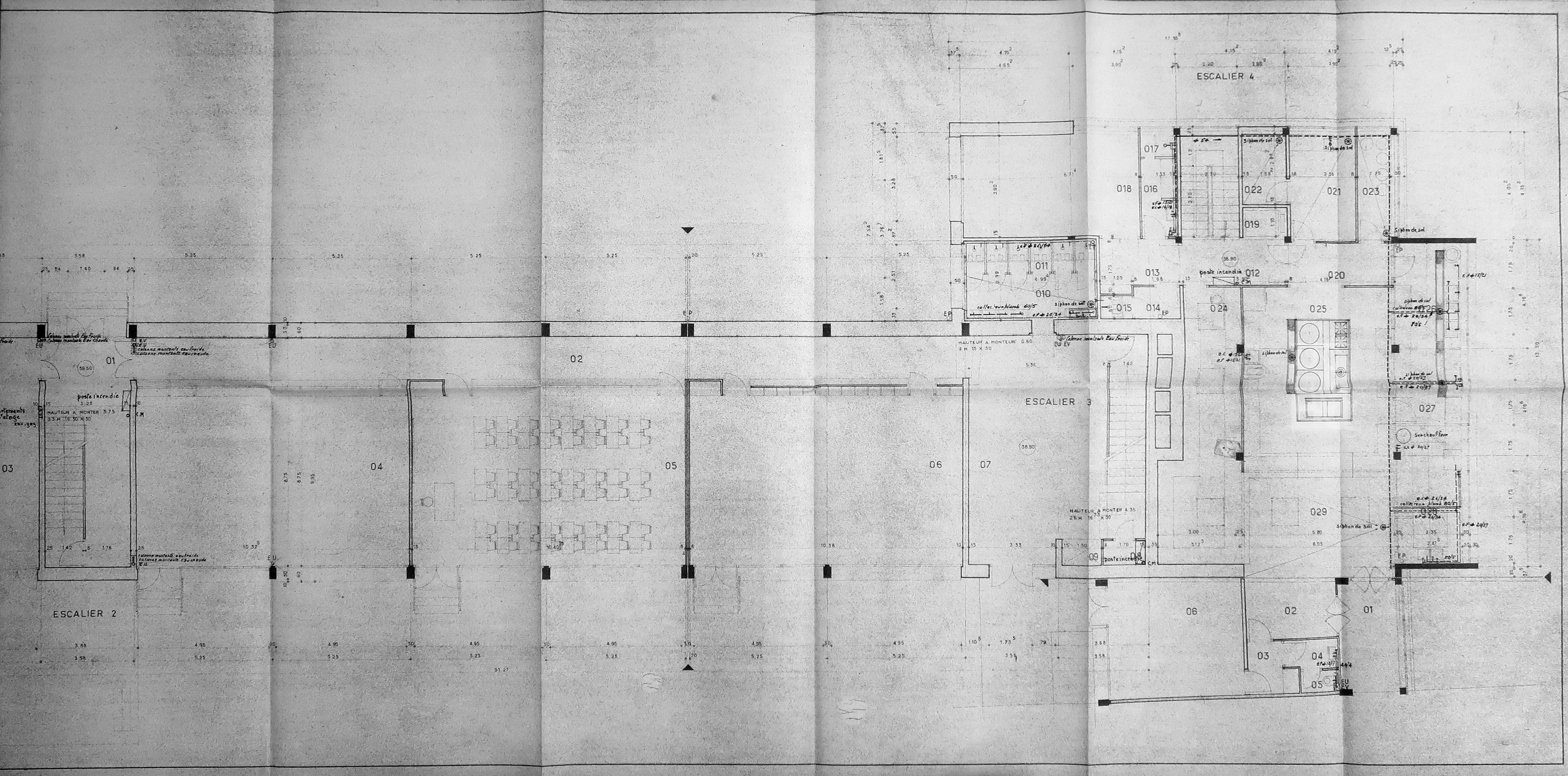 Plan de la cuisine et de salles de classe. Raymond Lopez, architecte, 1956.Immatriculation