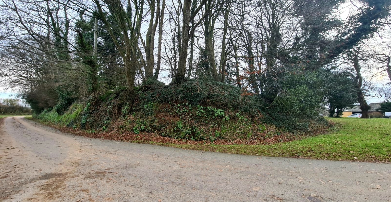 Vue générale du talus en forme de "L" depuis la venelle, état en hiver 2023. Il pourrait s'agir d'un talus défensif (parcelle n° 149 ; ex parcelle n° 877 sur le cadastre de 1831)Immatriculation
