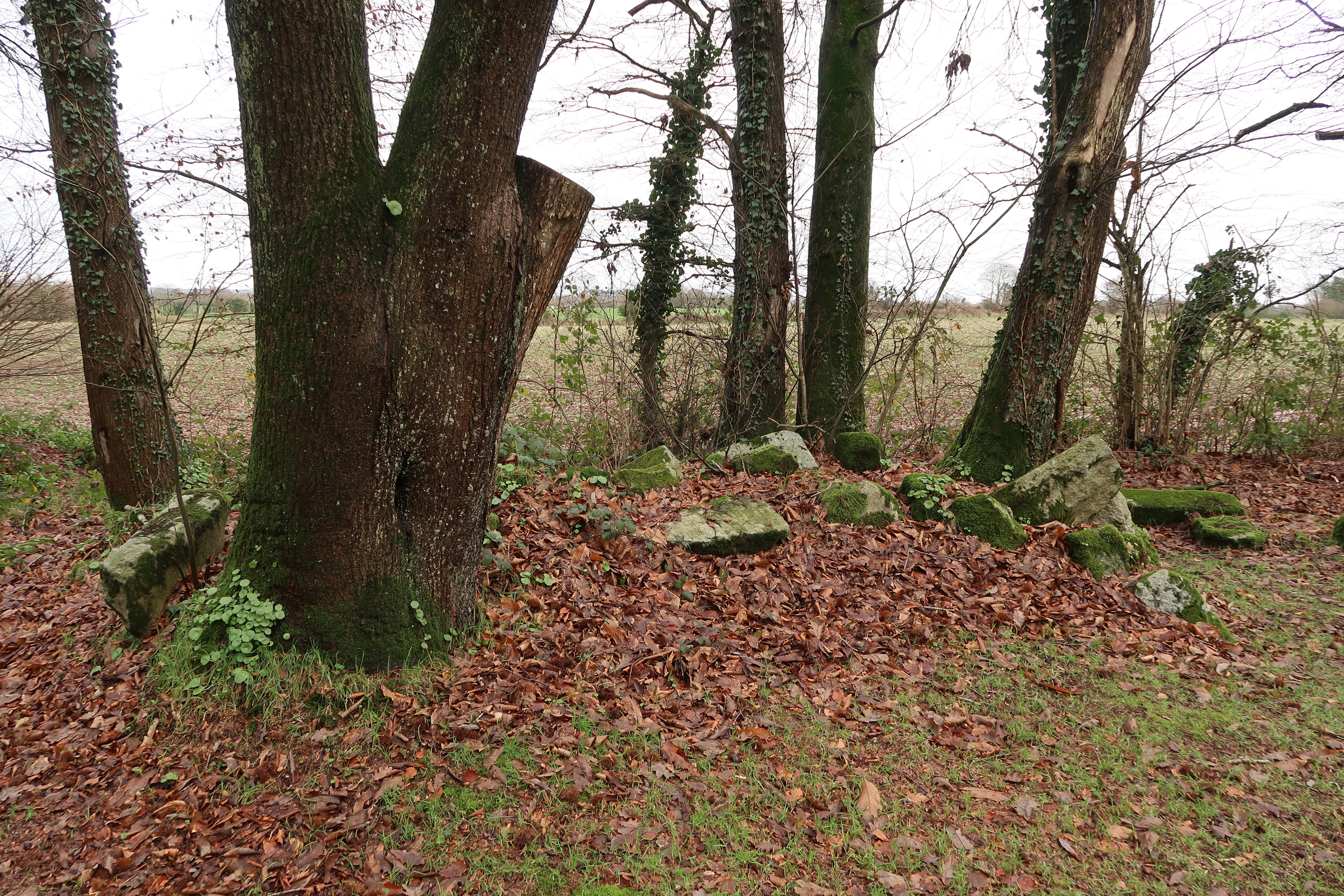 Vue du dépot lapidaire situé à l'est de la chapelle, état dans l'hiver 2023Immatriculation