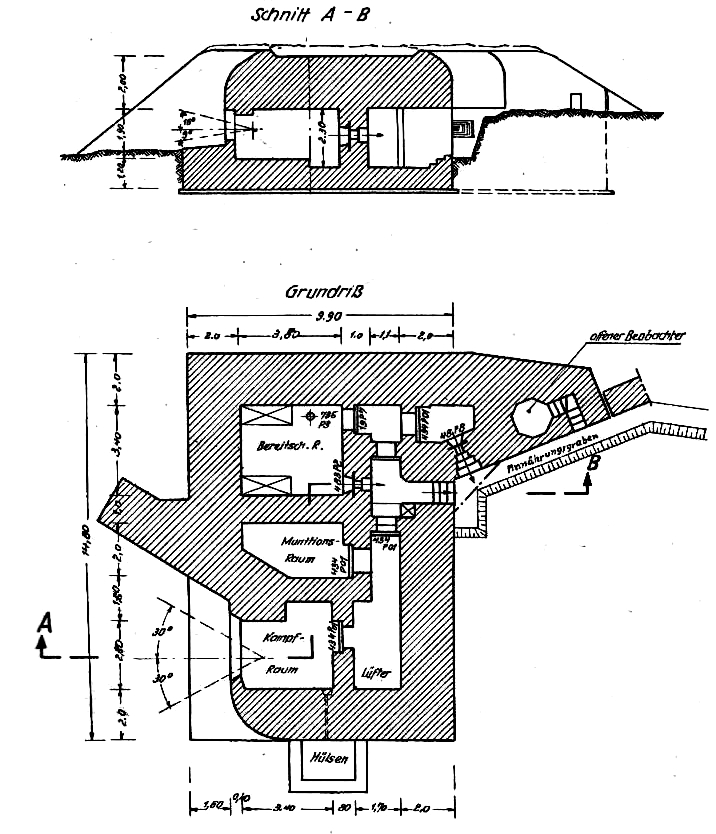 Plan-type d'un bunker de type 653 pour un canon antchar de 5 cm (Schartenstand für 5 cm KwK)Immatriculation