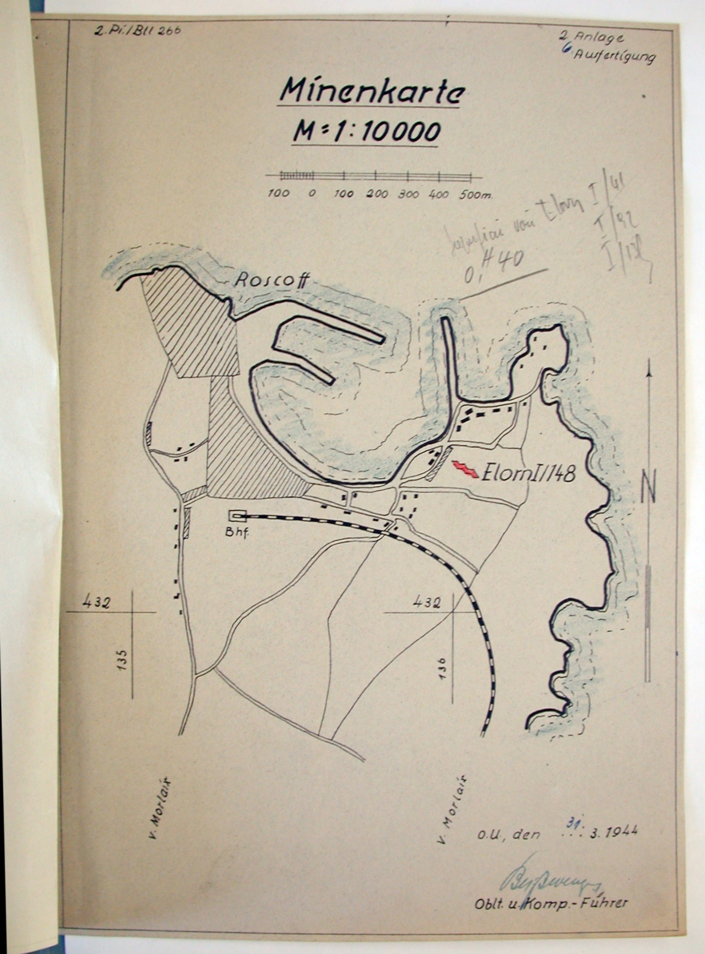 Plan général du champ de mines Elorn I/148 posé le 31 mars 1944 (2./Pi./Btl. 266 : 57727C)-